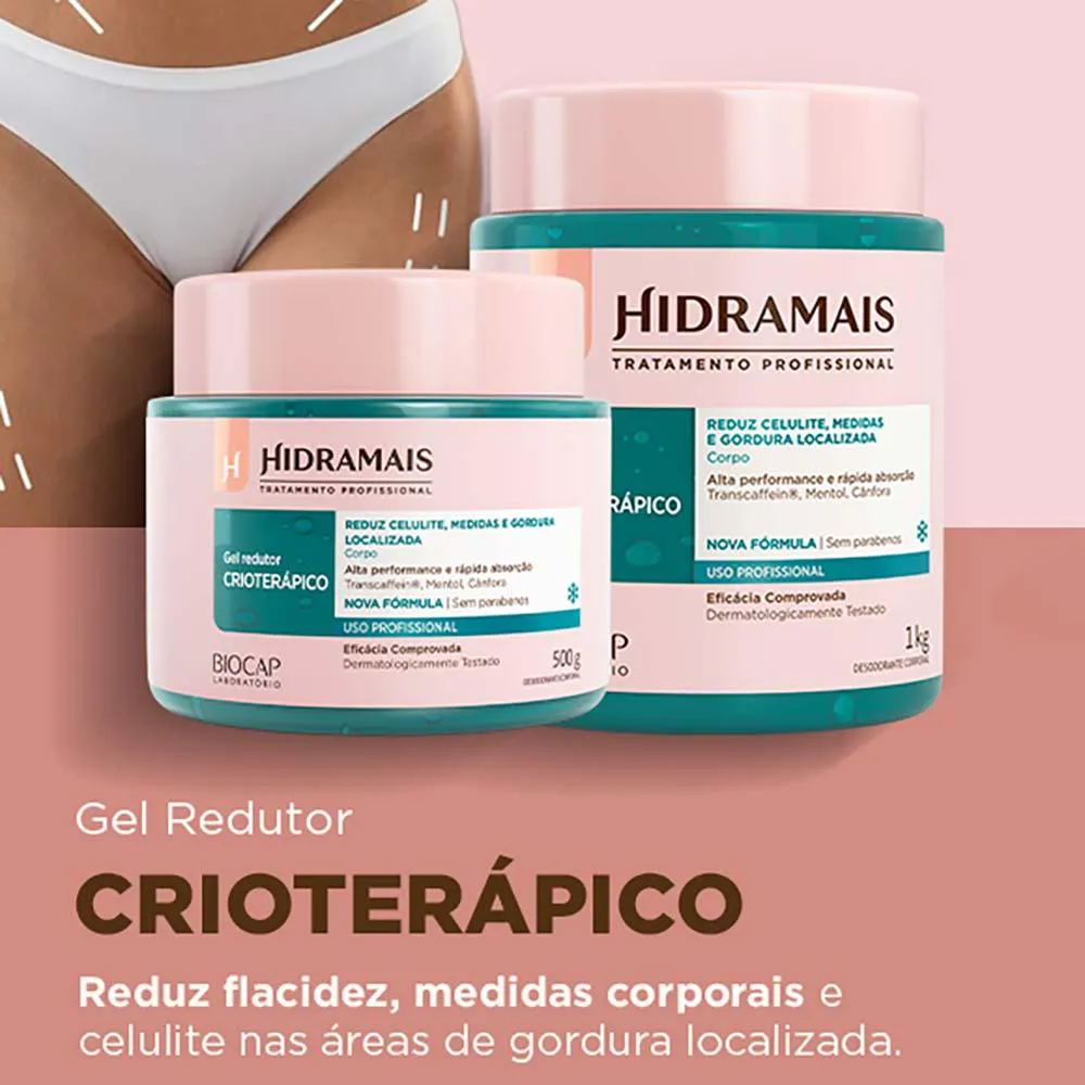 Além de ser um potente redutor de medidas, o Gel Redutor Crioterápico Hidramais aumenta a firmeza da pele e possui alta ação redutora de gordura localizada e de celulite.