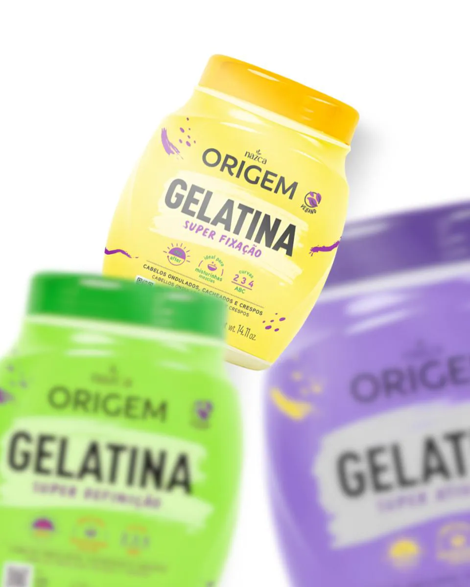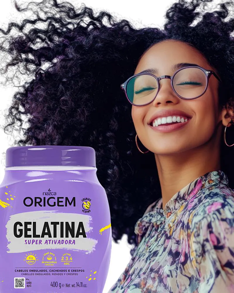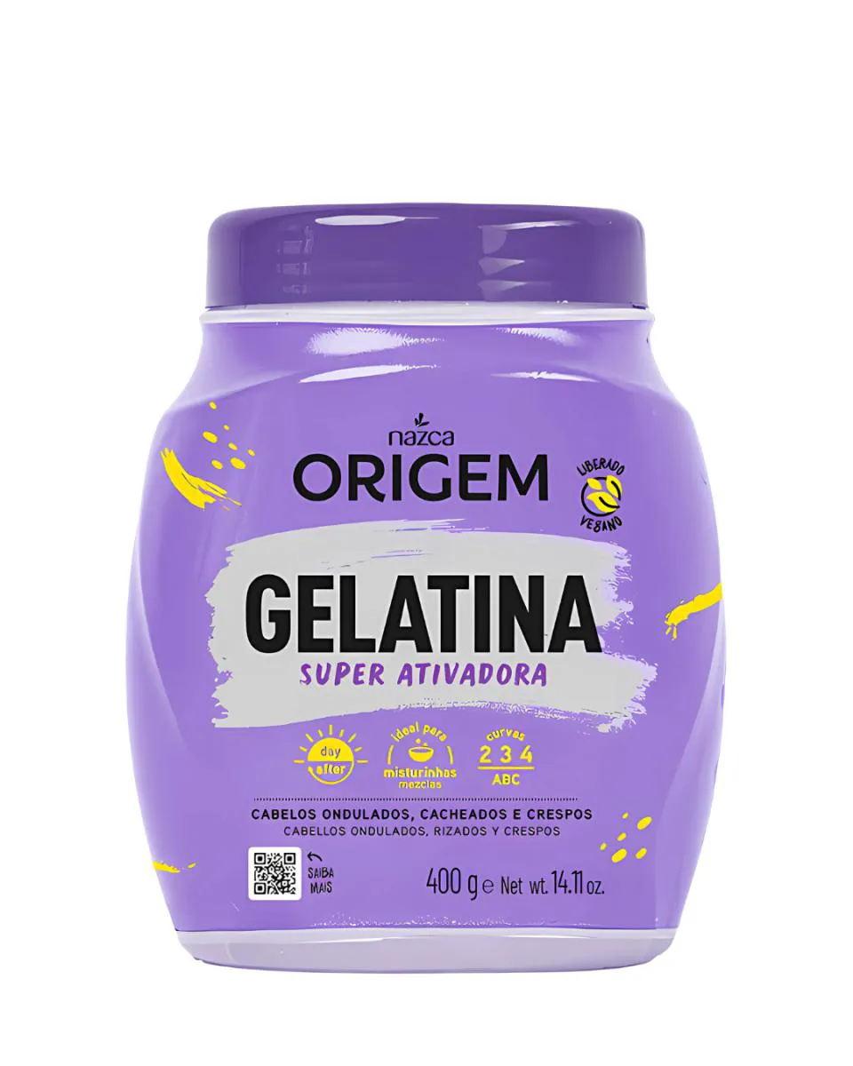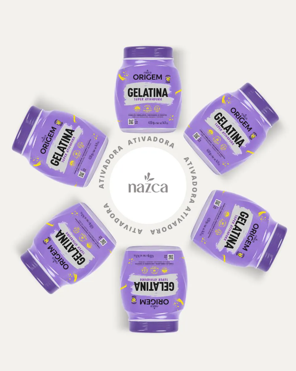 A Gelatina Super Ativadora Origem da Nazca serve para ativar, hidratar e definir cachos, ondulados e crespos, proporcionando brilho intenso e controle do frizz. Com fórmulas veganas ricas em colágeno vegetal e ácido hialurônico, ela promove maciez e textura cremosa aos fios, sendo ideal também para o uso no "day after" para reativar a forma dos cachos.