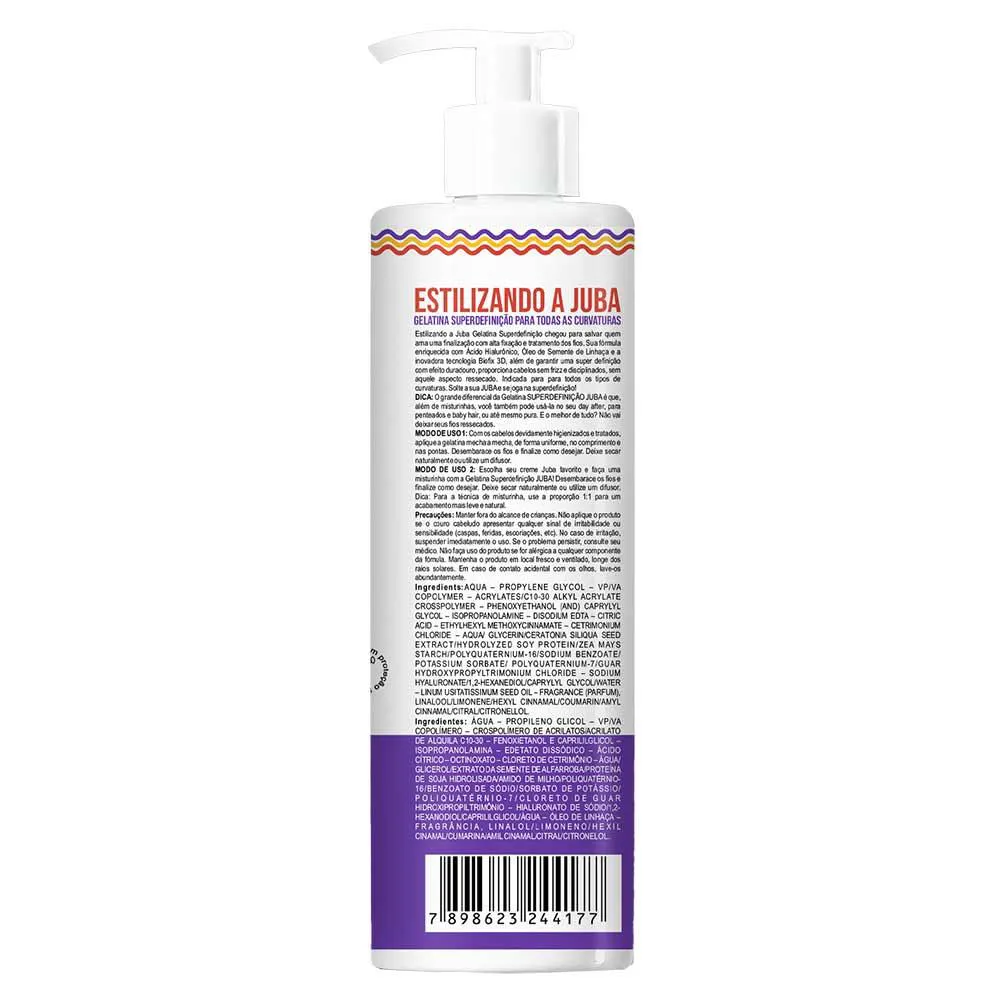 A Gelatina Super Definição é enriquecida com Ácido Hialurônico, que ajuda a manter a hidratação dos fios, Óleo de Semente de Linhaça, que proporciona nutrição e brilho, e a Tecnologia Biofix 3D, responsável por garantir uma fixação e definição superiores.