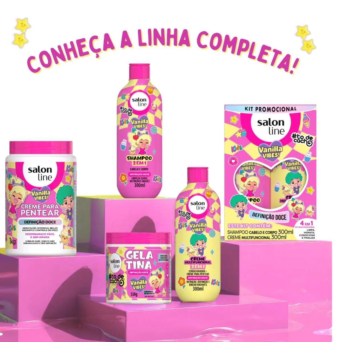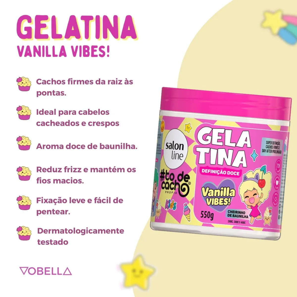 Garanta cachos firmes, definidos e cheirosos com a Gelatina To de Cacho Kids Vanilla Vibes Salon Line. Desenvolvida especialmente para os fios infantis, sua fórmula proporciona super definição, controle do frizz e hidratação leve, garantindo movimento natural e um day after prolongado. Com aroma doce de baunilha, torna o cuidado dos cachinhos ainda mais divertido e agradável.