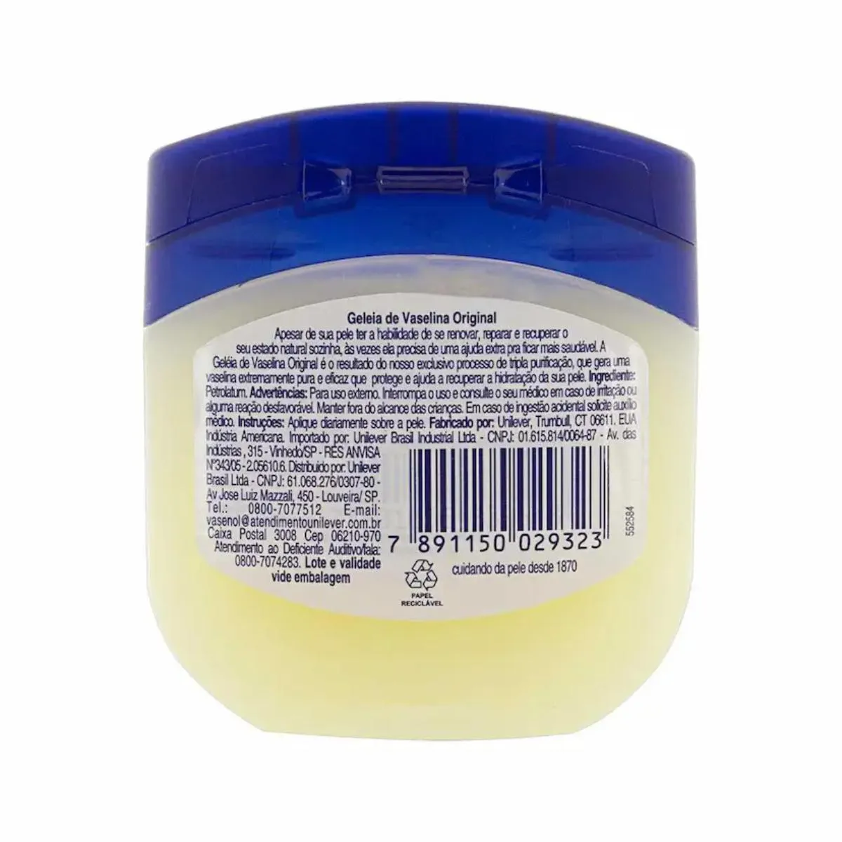 A Geleia de Vaselina Original de Vasenol é um produto hidratante que protege e recupera a pele, criando uma barreira protetora para manter a umidade natural. Serve para tratar pele seca, prevenir ressecamento, proteger contra danos externos, auxiliar na recuperação de pequenos cortes e queimaduras, e reduzir o aparecimento de linhas finas e secas.