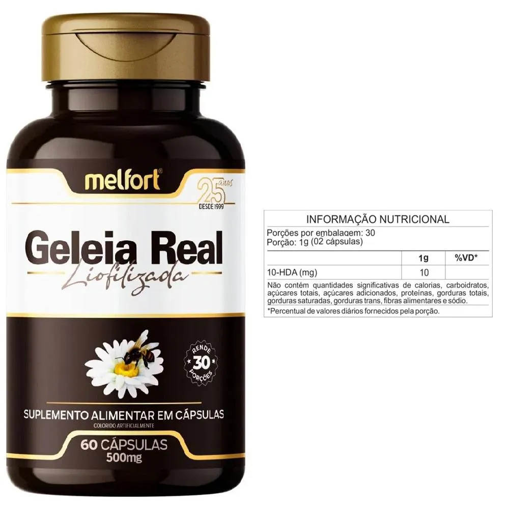 Geleia Real Liofilizada 60 Caps 500Mg Melfort