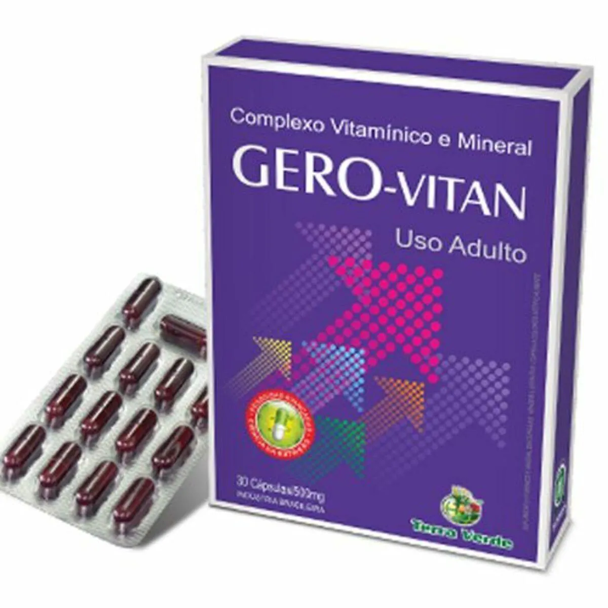 GEROVITAN é um complexo que integra alto teores de vitaminas e minerais, proporcionando uma dose segura e conveniente de 100% das necessidades diárias que o organismo requer destas substâncias, com a ingestão de apenas uma cápsula ao dia.