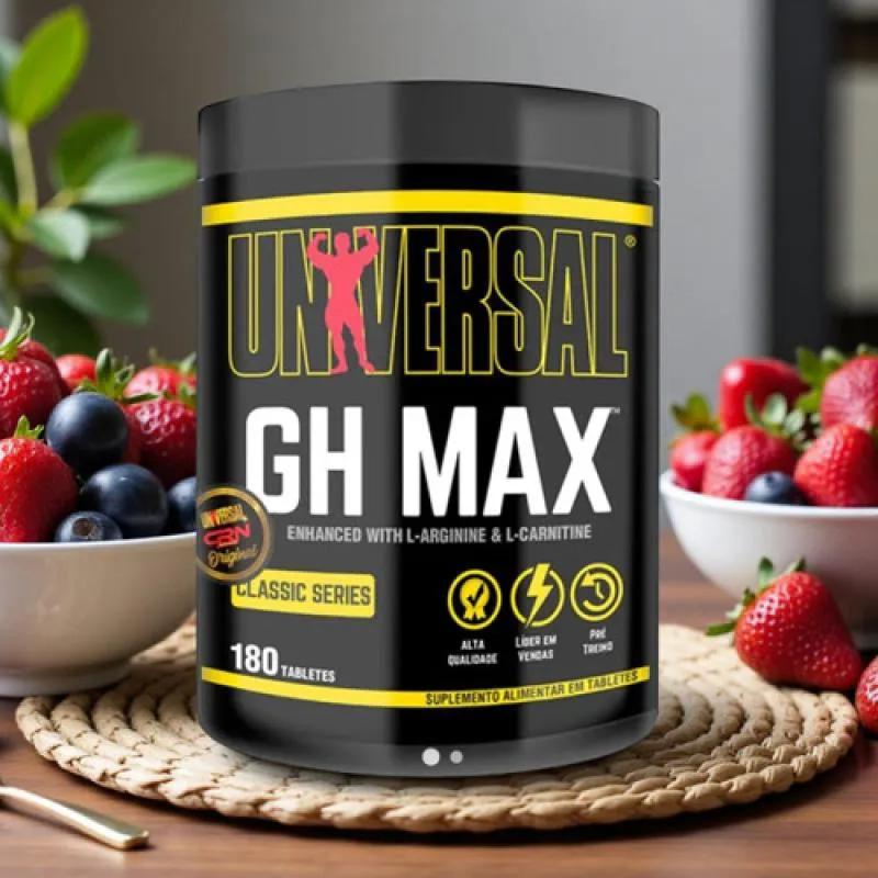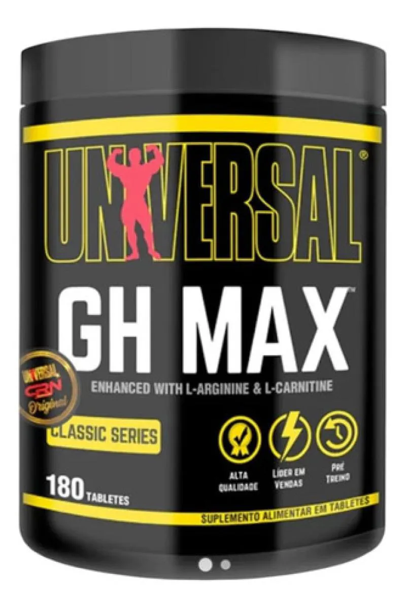 Gh max universal nutrition voltou só que agora ele voltou de cara nova o Gh max possui agora 2 Selos autenticadores de originalidade e segurança para seus consumidores, atualmente o produto contem 1 Selo homolografico em 3D na lateral do produto com os dizeres Universal + Nome da industria responsável pela marca no brasil e o 2 Selo esta no fundo de seu pote Holografado e timbrado com o nome da universal + nome da Industria da universal no brasil, essa nova cara do Gh max esta incrivelmente hardcore pois os tablets estão com o teor de pureza de 100% sendo assim o produto se torna muito mais super concentrado e de qualidade Gh max produto 100% de qualidade original um líder de vendas um pre treino extremamente de incrível universal nutrition .