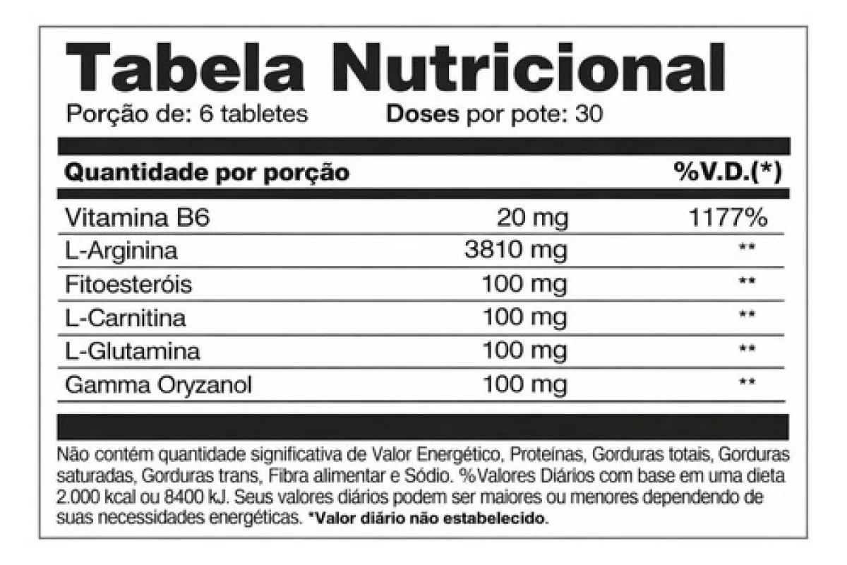 - Arginina alfa cetoglutarato, fosfato de calcio, whey protein, acido estearico, l-carnitina fumarato, fitoesterois, estearato de magnesio, glutamina, Gamma oryzanol, pitidoxina, vitamina b6, esmalte farmaceutico, contém leite de soja.