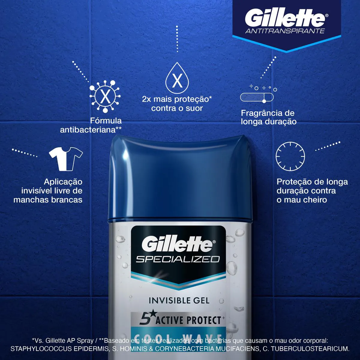 Desodorante Antitranspirante Twist Stick Gel Gillette Specialized Cool Wave Masculino 48h 113g