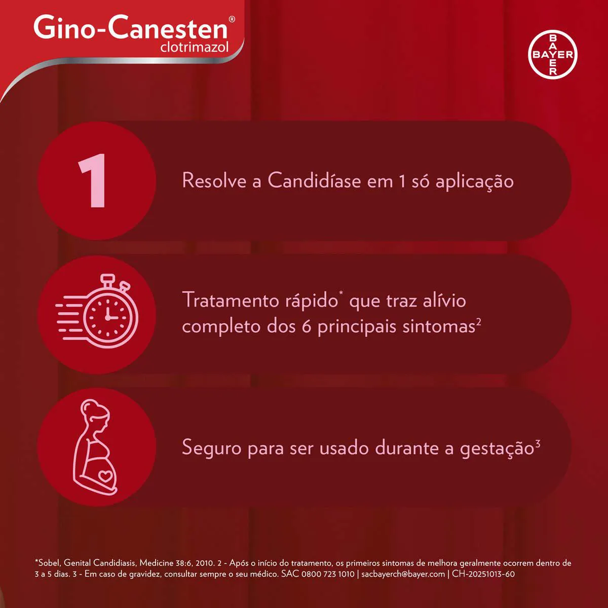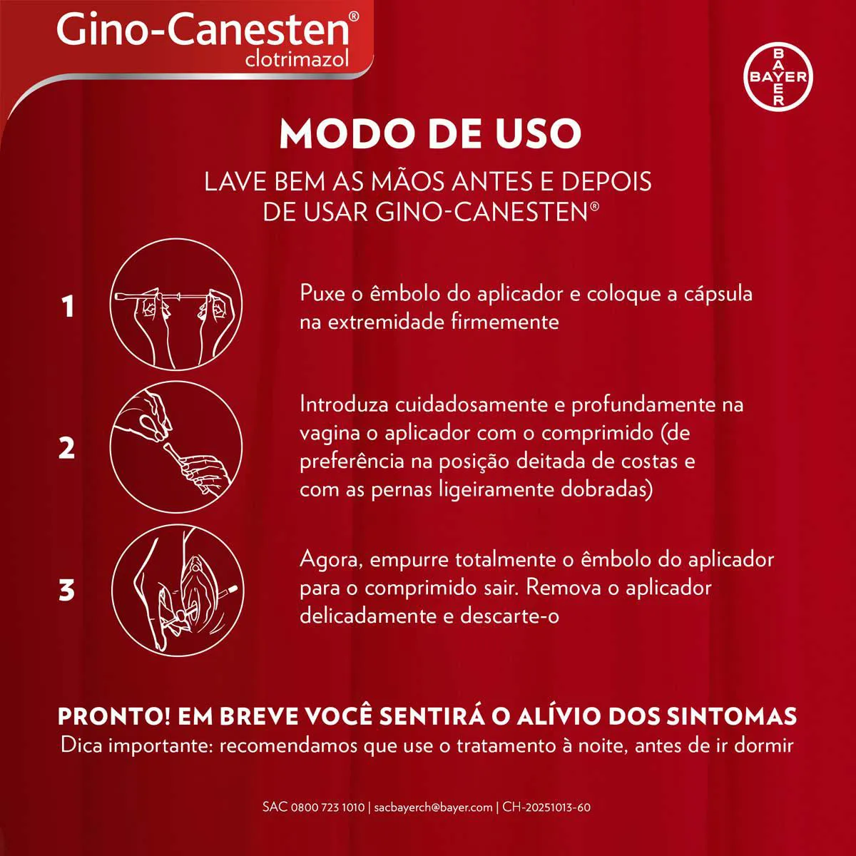 - Uso seguro e testado: Gino-Canesten® é recomendado por ginecologistas e pode ser utilizado durante a gravidez, com aplicação sem o aplicador.