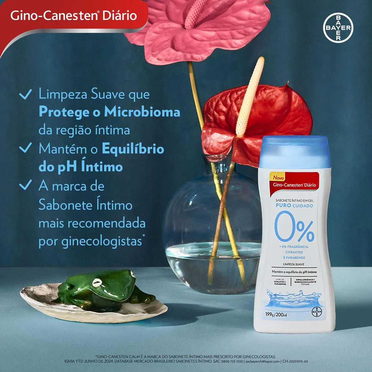 O Gino-Canesten® Diário Puro Cuidado é um sabonete íntimo diário em gel desenvolvido para oferecer