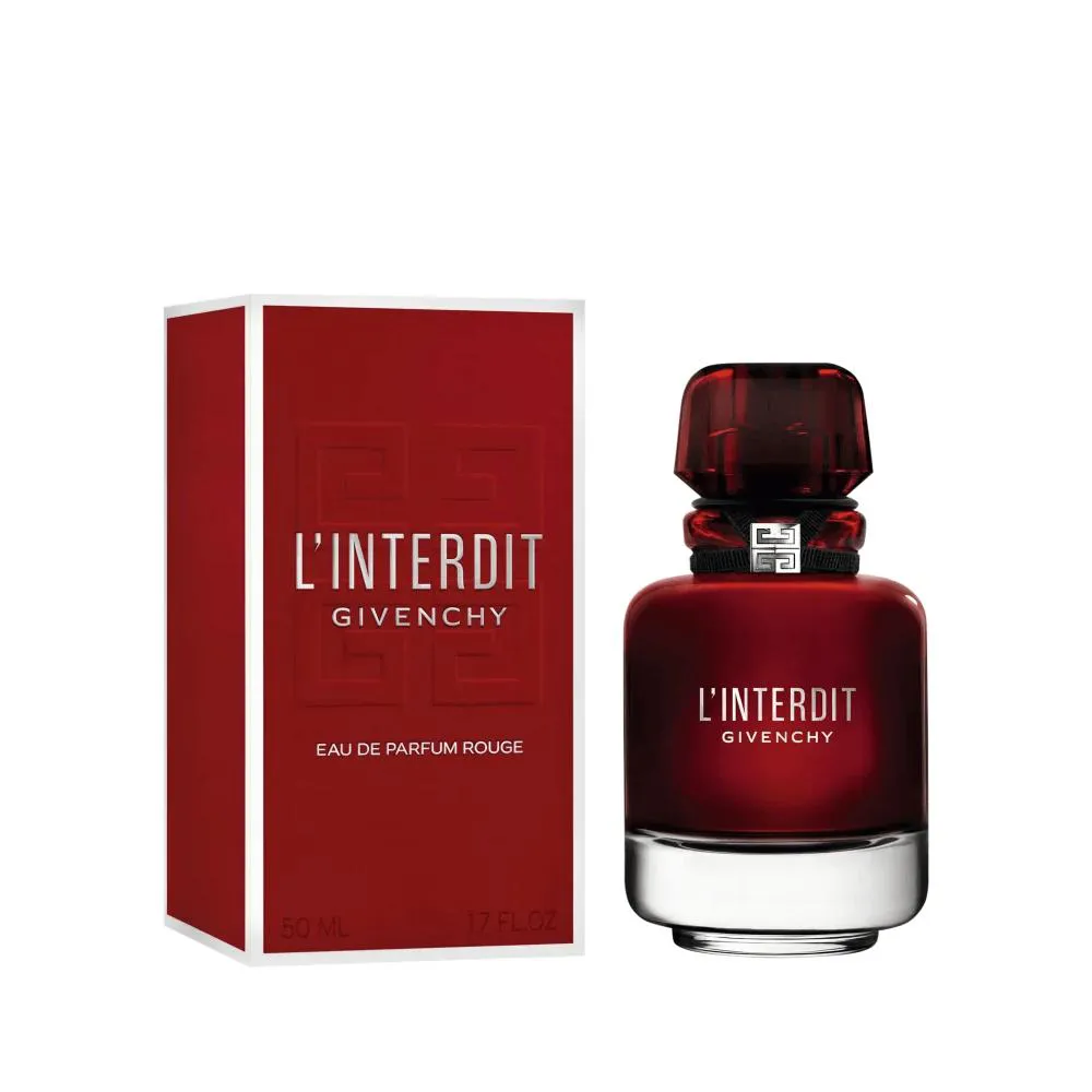 Em uma homenagem ao icônico vermelho da marca, o frasco de perfume Givenchy L'Interdit Rouge é adornado com um verniz translúcido que incendeia o interior. Reconhecido como um dos mais reverenciados criadores de moda do mundo, Hubert de Givenchy carrega uma cartela de clientes composta pelas mulheres mais bem vestidas de todos os tempos. Fragrâncias, cosméticos e produtos de tratamento da Givenchy são tão preciosos como sua alta costura, com fórmulas personalizadas e inovadoras, com garantia de alta performance. Uma mistura de elegância do estilo francês com a espontaneidade do estilo americano.