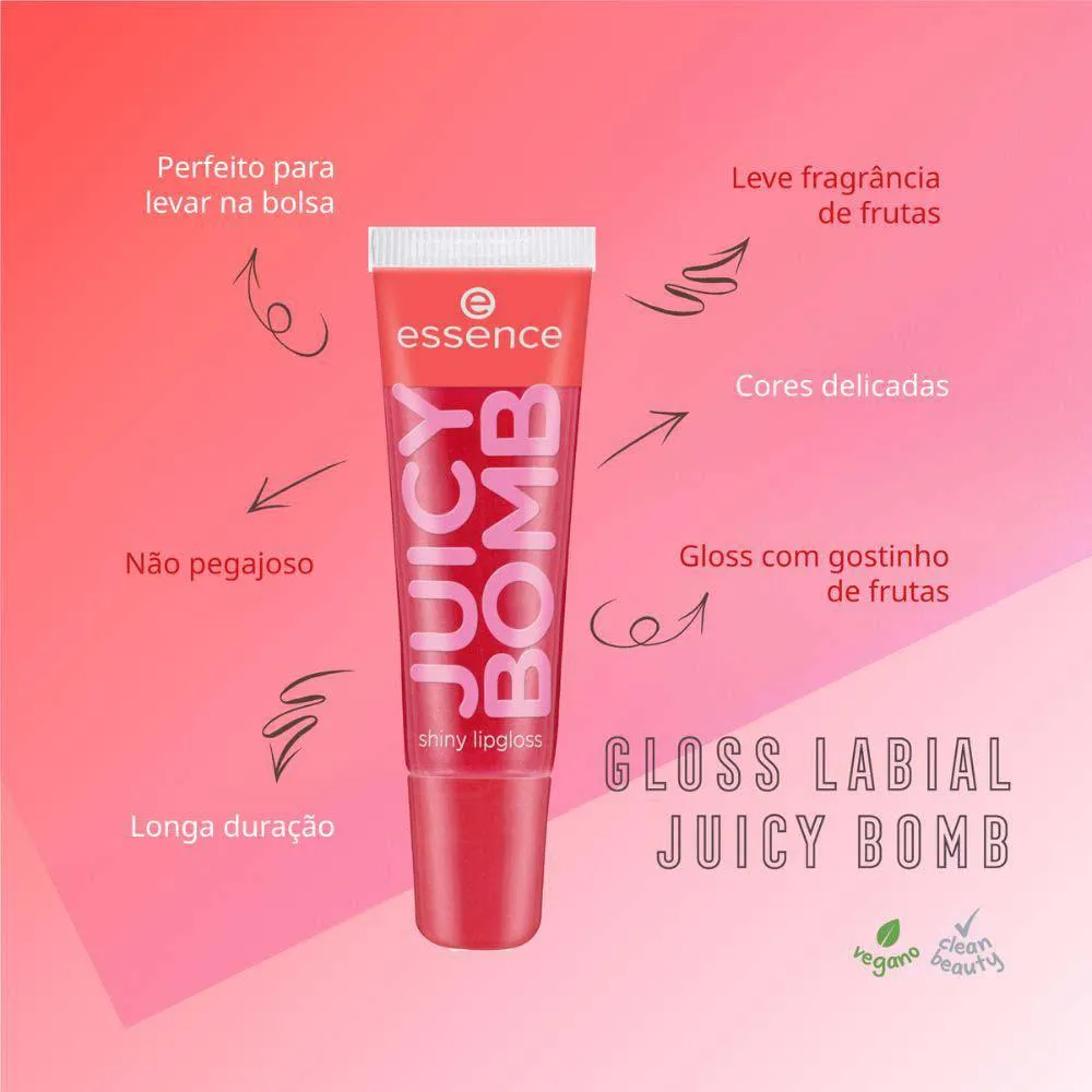 O Gloss Labial Essence Juicy Bomb é um gloss labial desenvolvido para realçar a beleza dos lábios com brilho intenso, sem deixar sensação pegajosa.