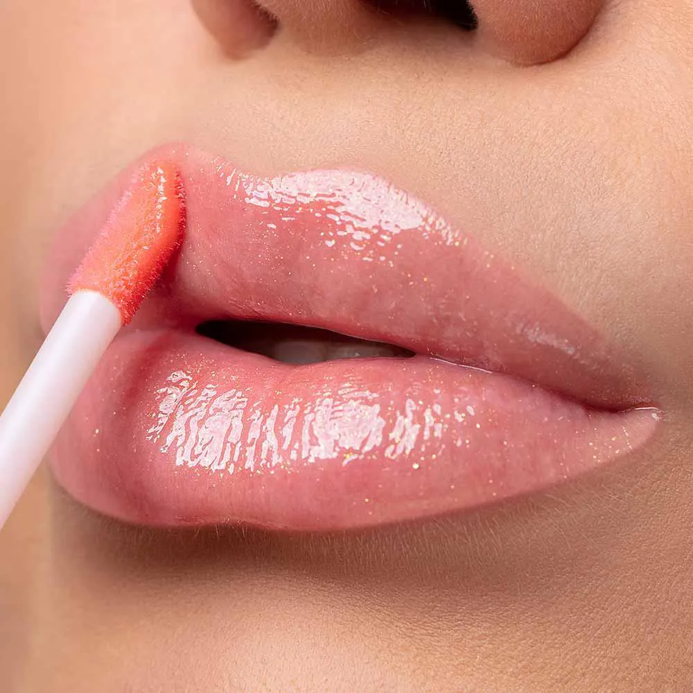 2. Para um efeito glow, aplique o gloss sobre o batom.