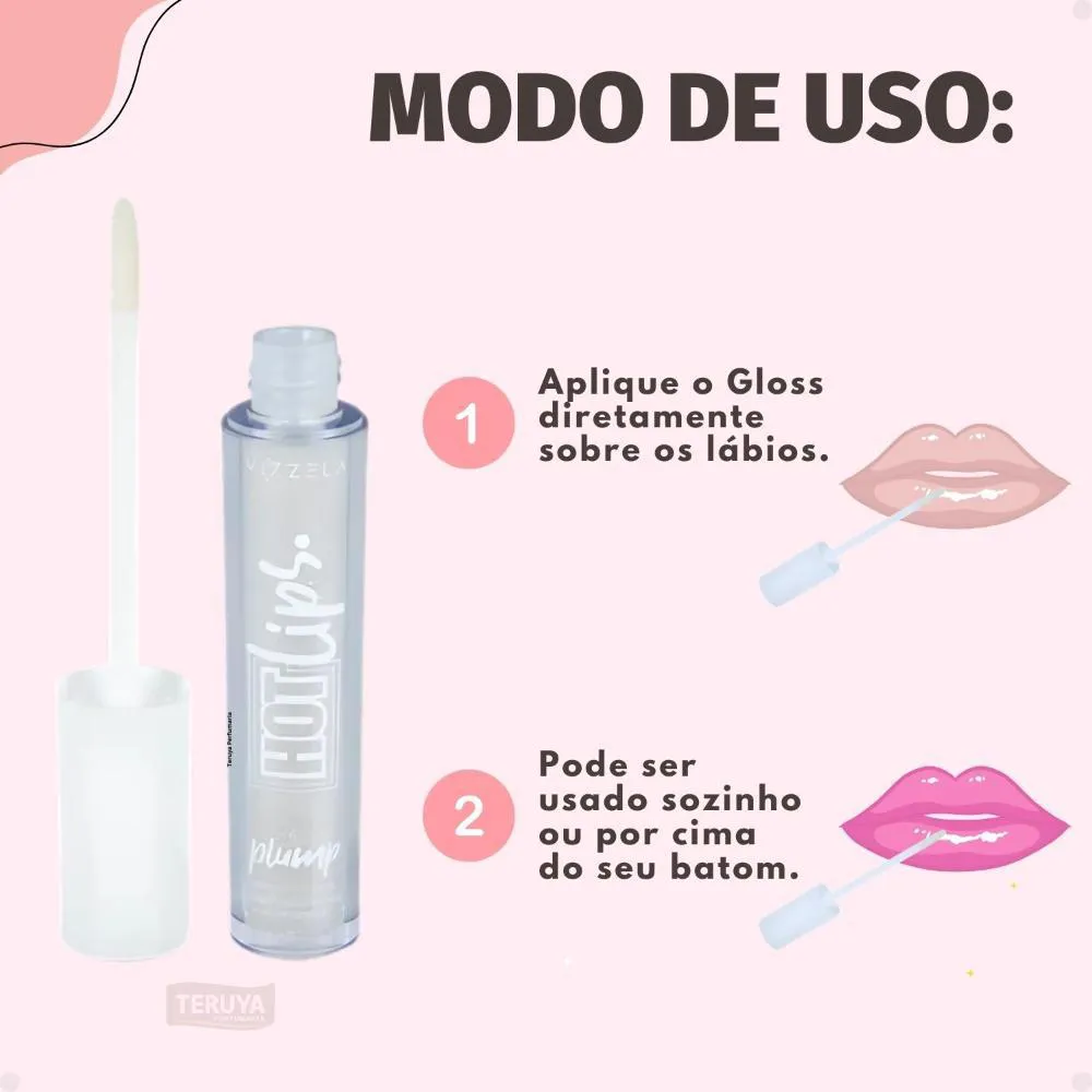 lábios irresistíveis com um toque de brilho e volume. Desenvolvido pela VIZZELA, este gloss proporciona uma leve sensação de aquecimento e um notável efeito plump, transformando seus lábios instantaneamente. Sua fórmula exclusiva é enriquecida com Ácido Hialurônico de baixo peso molecular, garantindo hidratação intensa e duradoura, e
