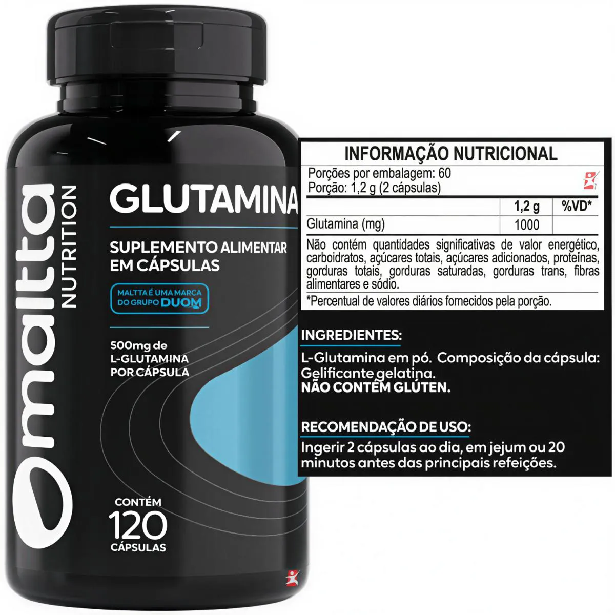 1 Unidade do produto: GLUTAMINA 100% PURA 1G NA PORÇÃO 120 CÁPSULAS - MALTTA NUTRITION