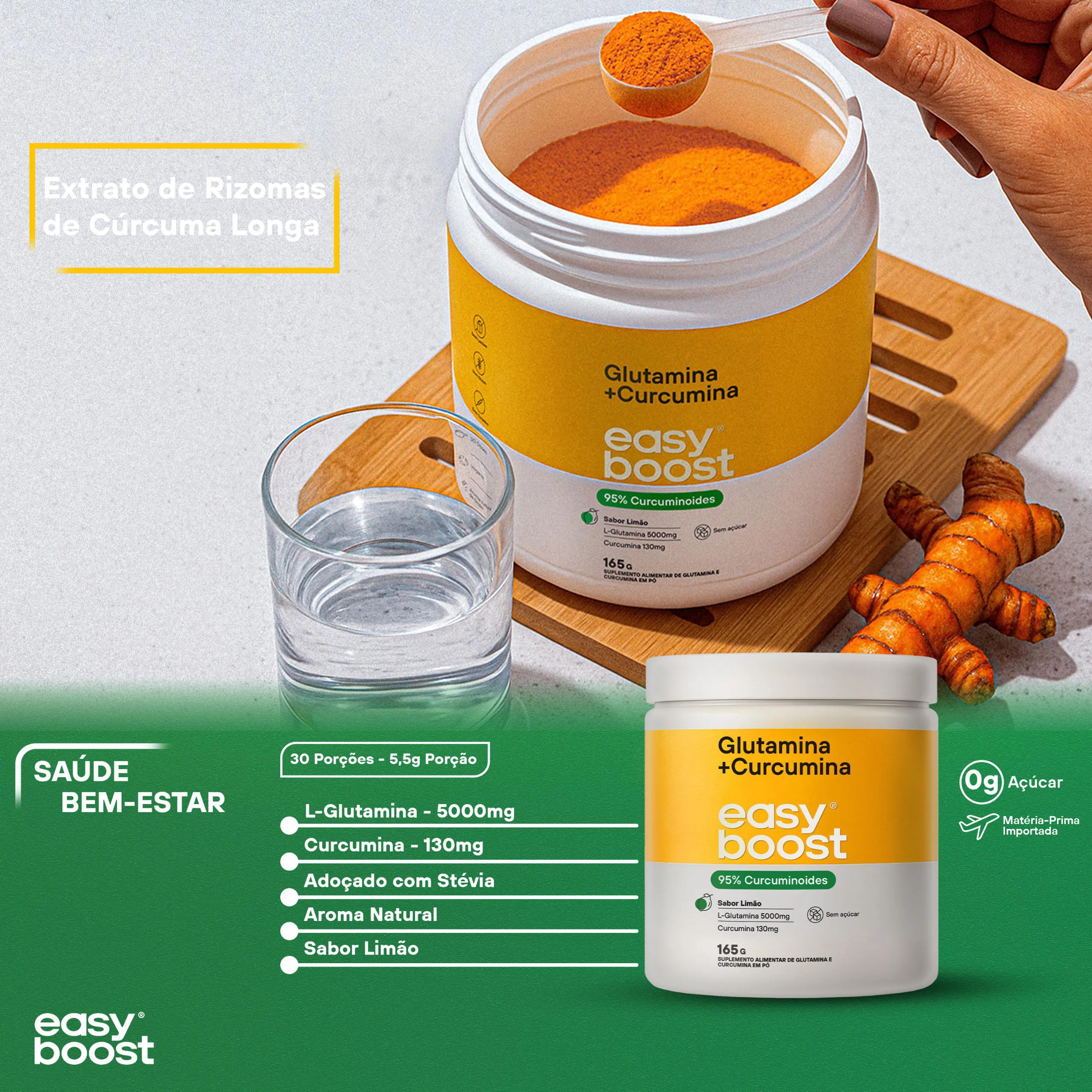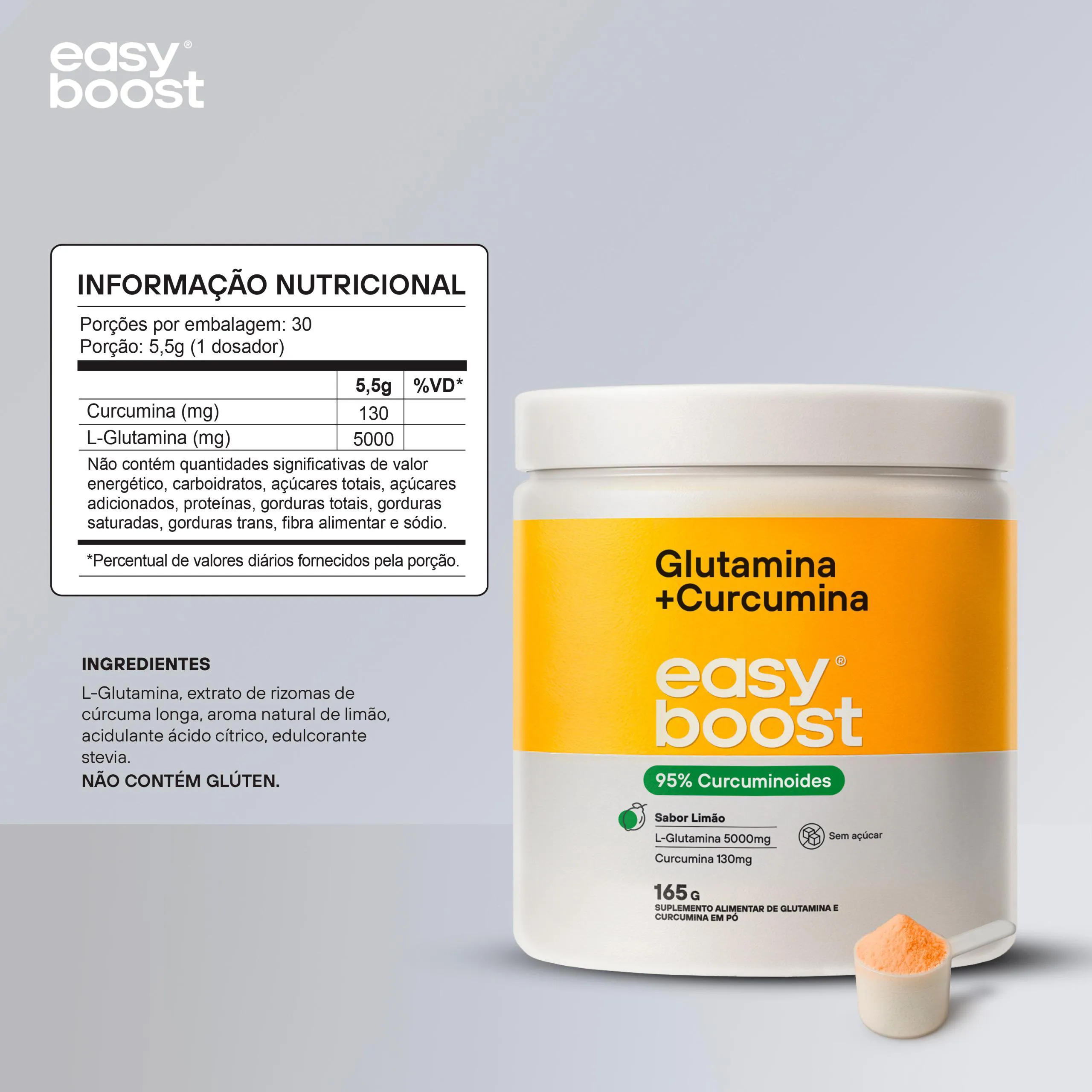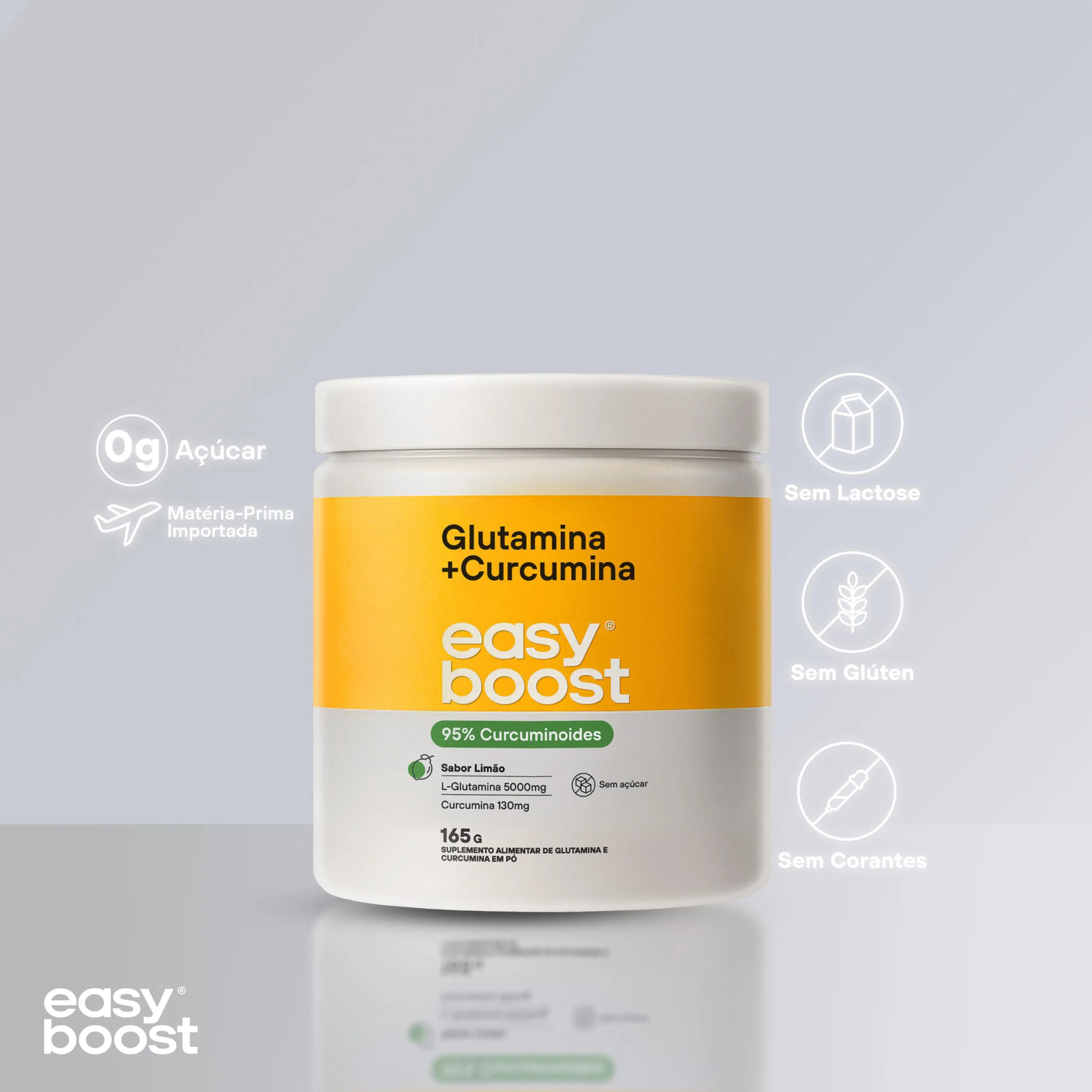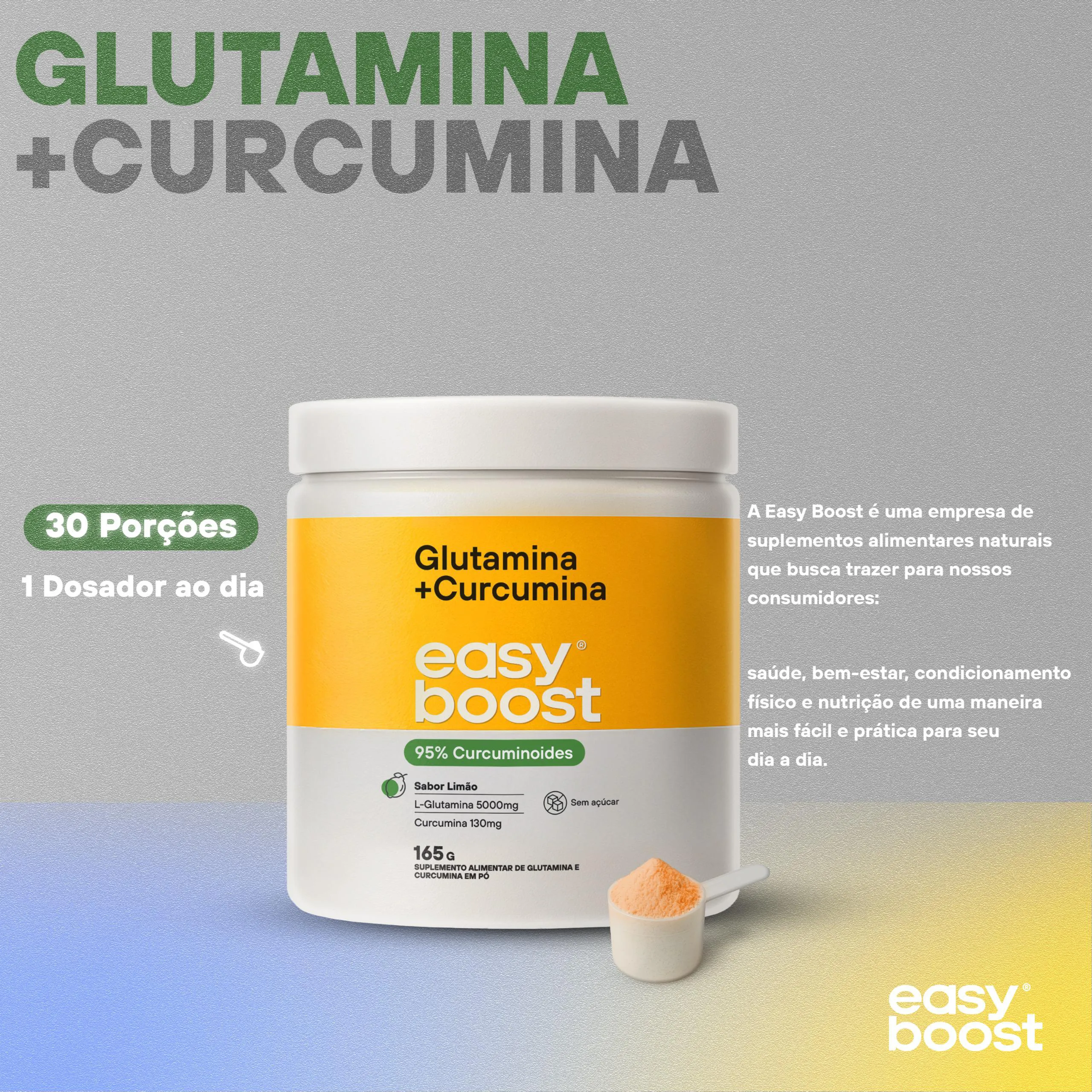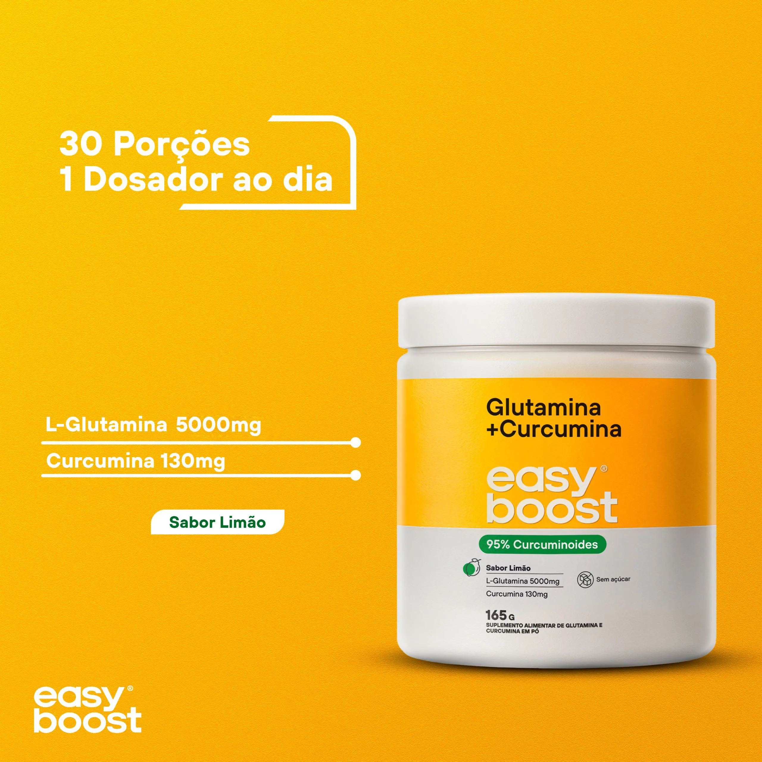 Glutamina + Curcumina Limão Easyboost 95% Curcuminoides 165g