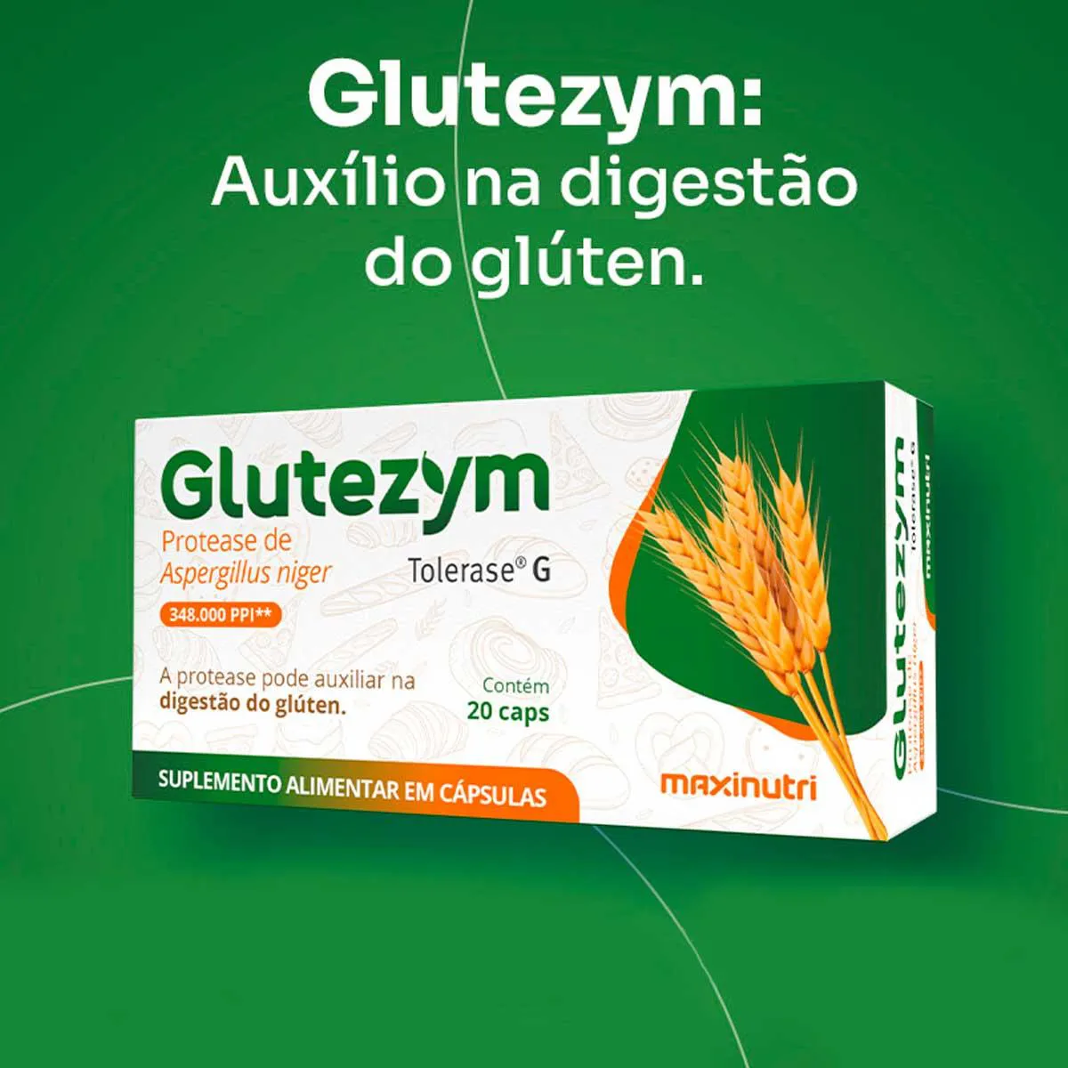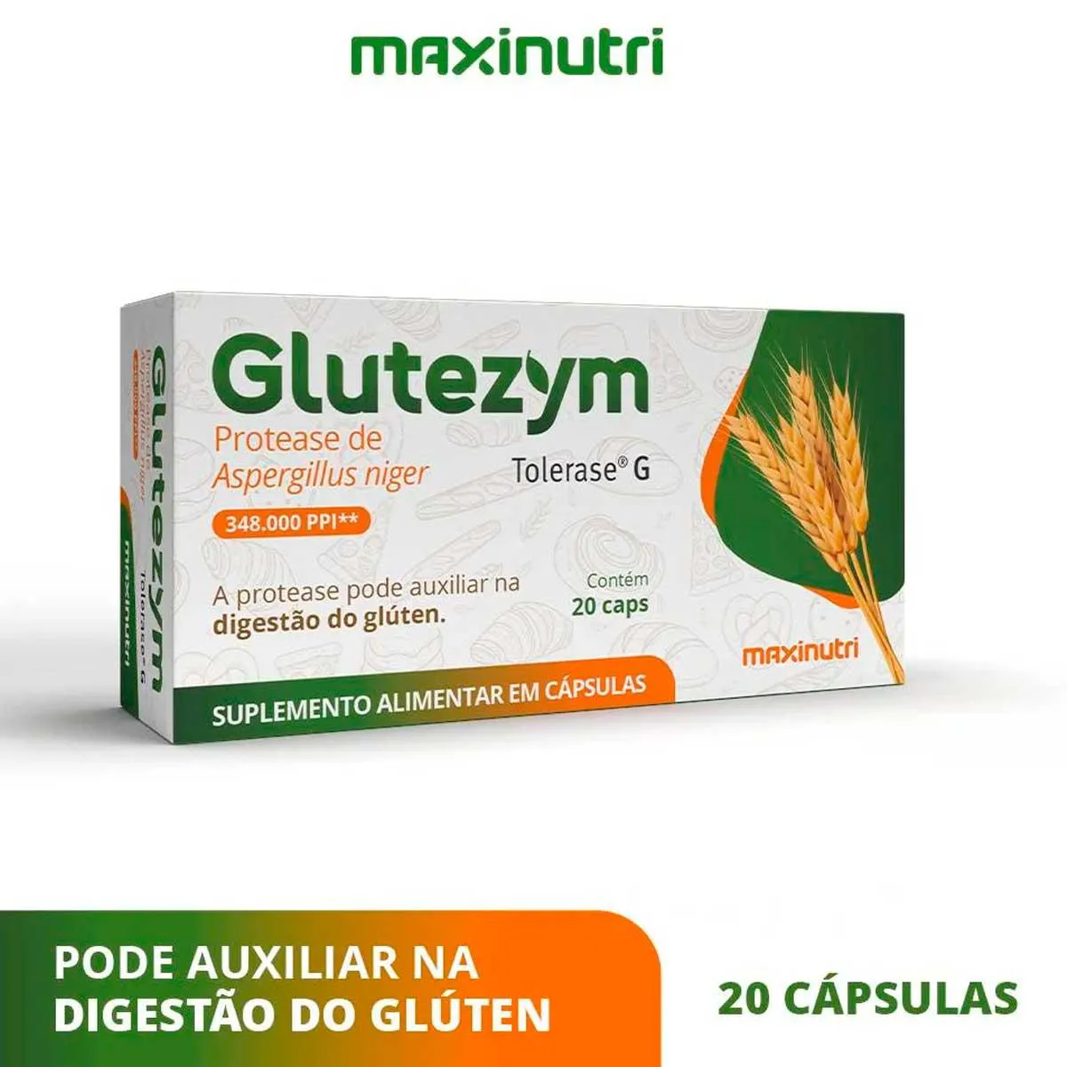 Glutezym 348.000 (Protease) - Intolerância ao Gluten - 20 Caps - Maxinutri