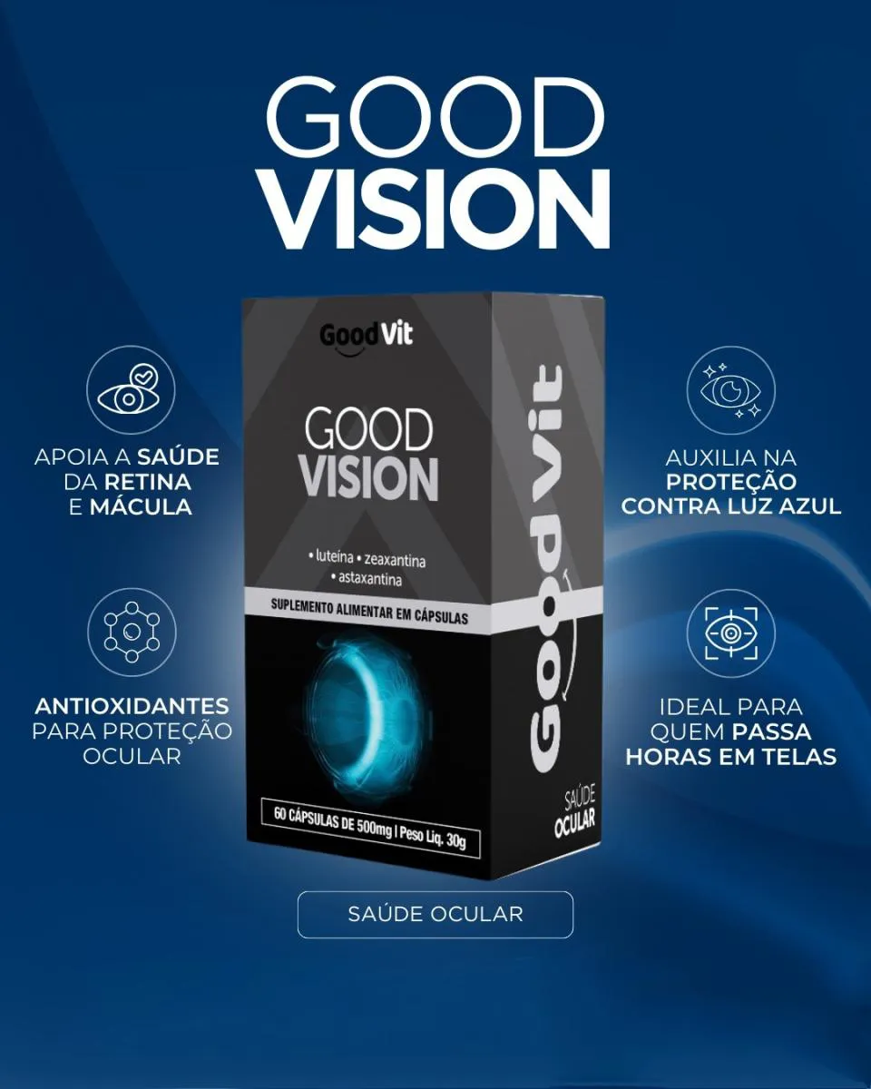 Good Vision serve como apoio nutricional para proteger a visão, reduzir o cansaço ocular e preservar a saúde dos olhos a longo prazo.