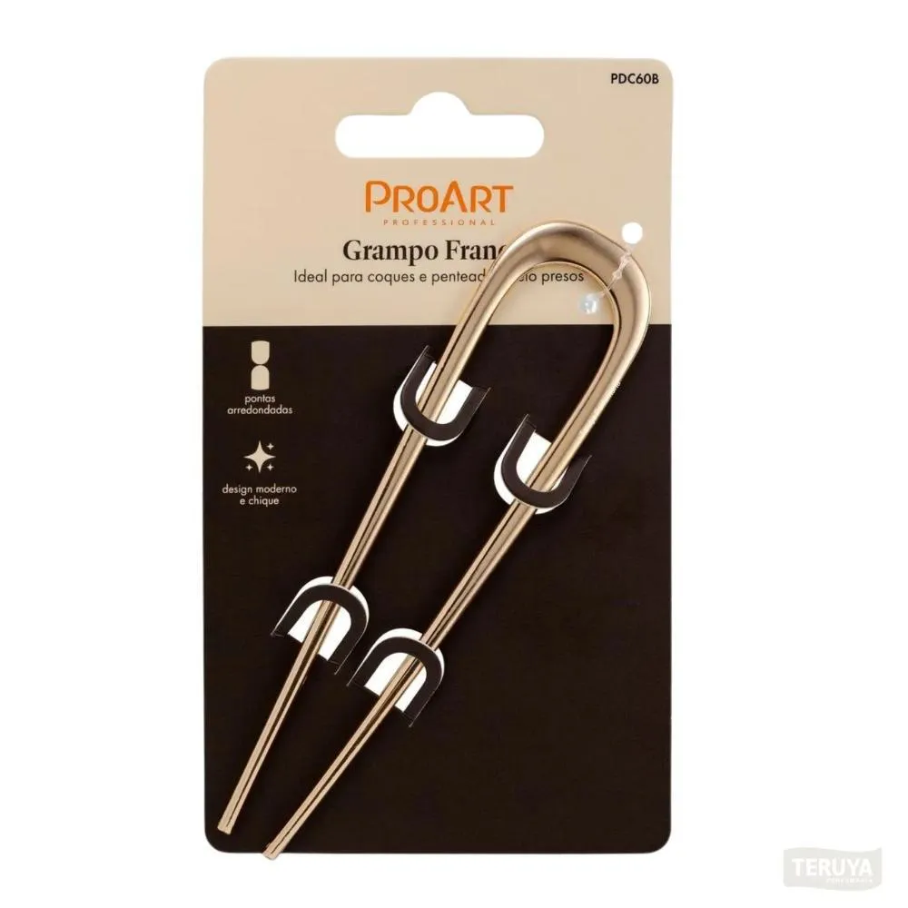 Acabamento dourado que confere um visual luxuoso, transformando um simples acessório em uma joia para seus cabelos.Design clássico de grampo francês, sinônimo de praticidade e estilo, garantindo um penteado elegante com mínimo esforço.Qualidade garantida pela marca PROART, reconhecida por seus produtos duráveis e de alto padrão.Ocasiões de Uso/Cenários Ideais