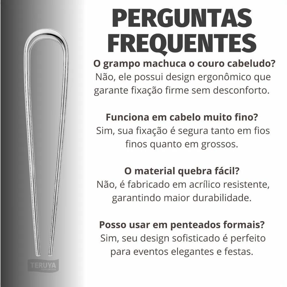 Fixação segura e duradoura para diversos tipos de penteados. Adiciona um toque de elegância e sofisticação ao visual. Versatilidade para complementar tanto looks casuais quanto formais.