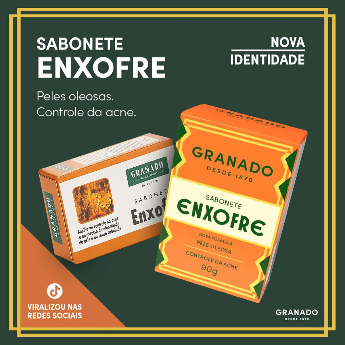 Granado Enxofre é um sabonete em barra, ideal para a limpeza do rosto que sofre com acne. Também é indicado para reduzir o excesso de oleosidade do couro cabeludo (com médio/baixo grau de oleosidade). Contém 7% de enxofre, e é livre de parabenos e ingredientes de origem animal.