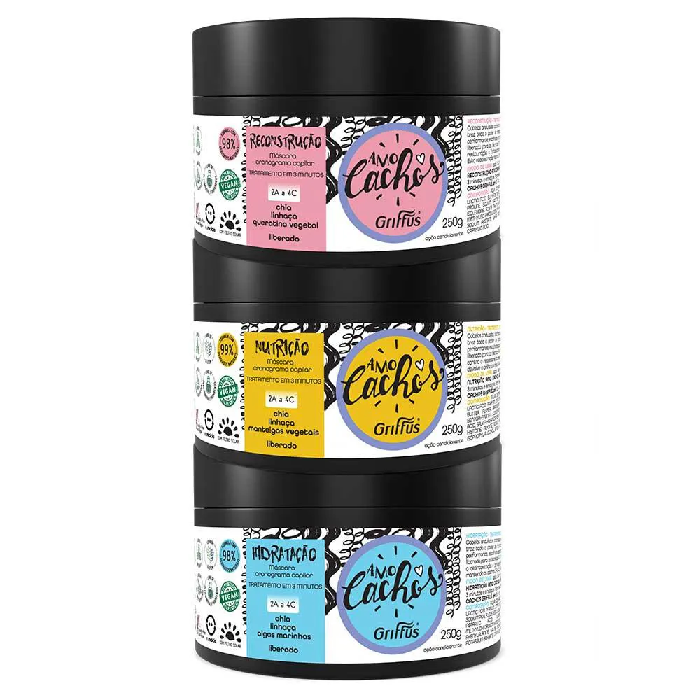 Griffus Cosméticos Amo Cachos Cronograma Kit - com Três Máscaras