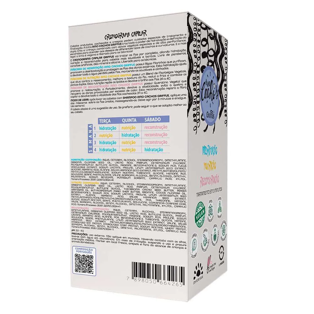 Griffus cosméticos Amo Cachos Cronograma Kit - Com Três MáscarasO Kit contém:
