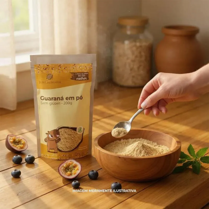 Guaraná em Pó 200 g da Tainá Alimentos é um suplemento 100% natural feito do fruto do guaraná, conhecido por sua excepcional concentração de cafeína entre 3% e 6% de seu peso, mais do que o dobro dos grãos de café com cerca de 1% a 2%. Ideal para quem busca um estímulo energético, esse pó oferece uma alternativa prática e funcional, com o benefício adicional de ser naturalmente