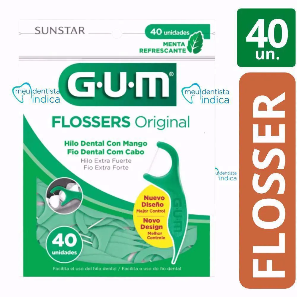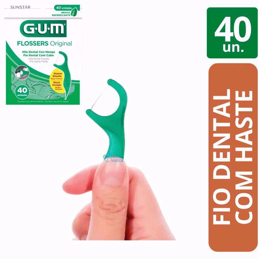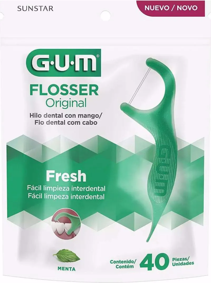 Flosser com fita dental sabor menta que limpa profundamente entre os dentes, removendo a placa e restos de comida.O Fio Dental Gum Flossers Original é uma haste com fio dental em sabor de menta refrescante, ideal para uso rápido e conveniente para o dia a dia, possibilitando o cuidado em qualquer momento desejado.