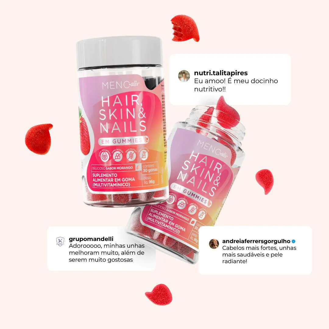 - Suplemento em gomas com ácido hialurônico e biotina.