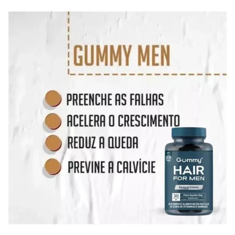 O Gummy For Men é um suplemento alimentar em formato de gomas, desenvolvido especificamente para o público masculino, com uma fórmula rica em vitaminas e minerais. Ele é composto por ingredientes como Biotina, Vitaminas A, C, D2, E, complexo B, Zinco, Cromo e Iodo, apresentado em uma embalagem com 30 gomas saborizadas.