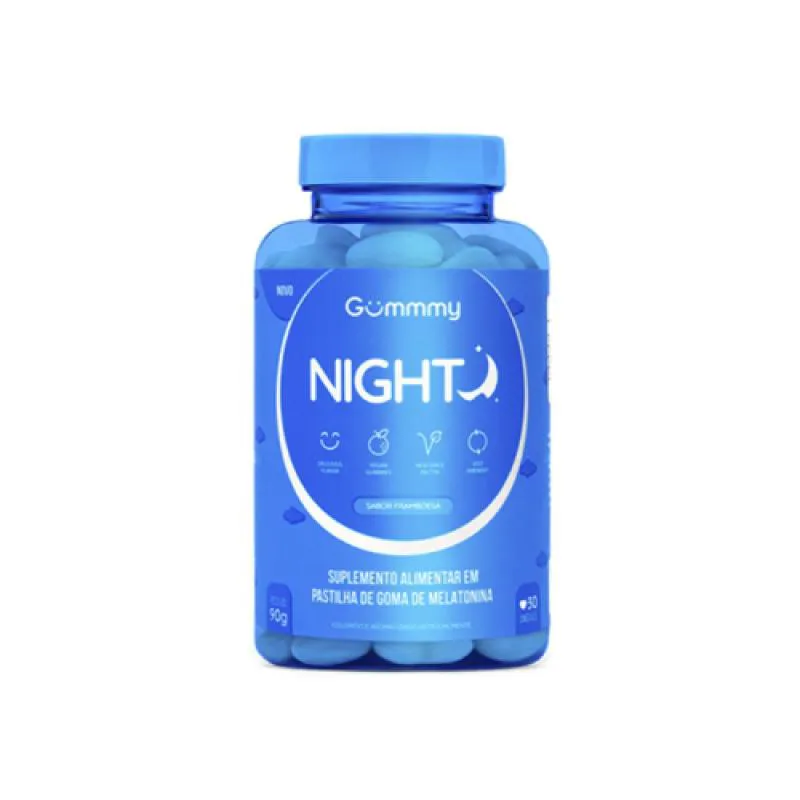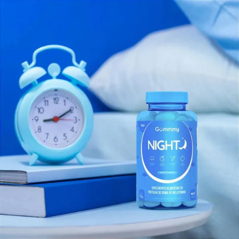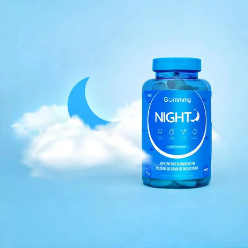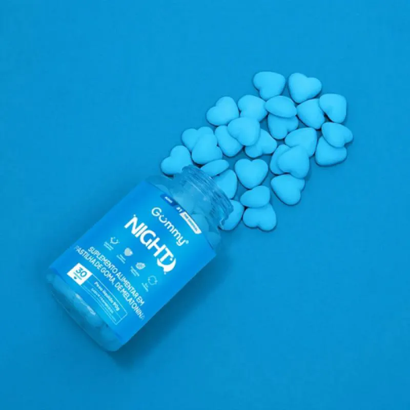 Gummy Night é um suplemento alimentar em gomas com melatonina, desenvolvido para auxiliar na qualidade do sono, promovendo noites mais tranquilas, relaxamento e bem-estar. Ideal para quem tem dificuldade para dormir ou deseja melhorar o ritmo natural do sono de forma segura e saborosa.Com textura macia e sabor agradável, oferece praticidade e conforto para sua rotina noturna.