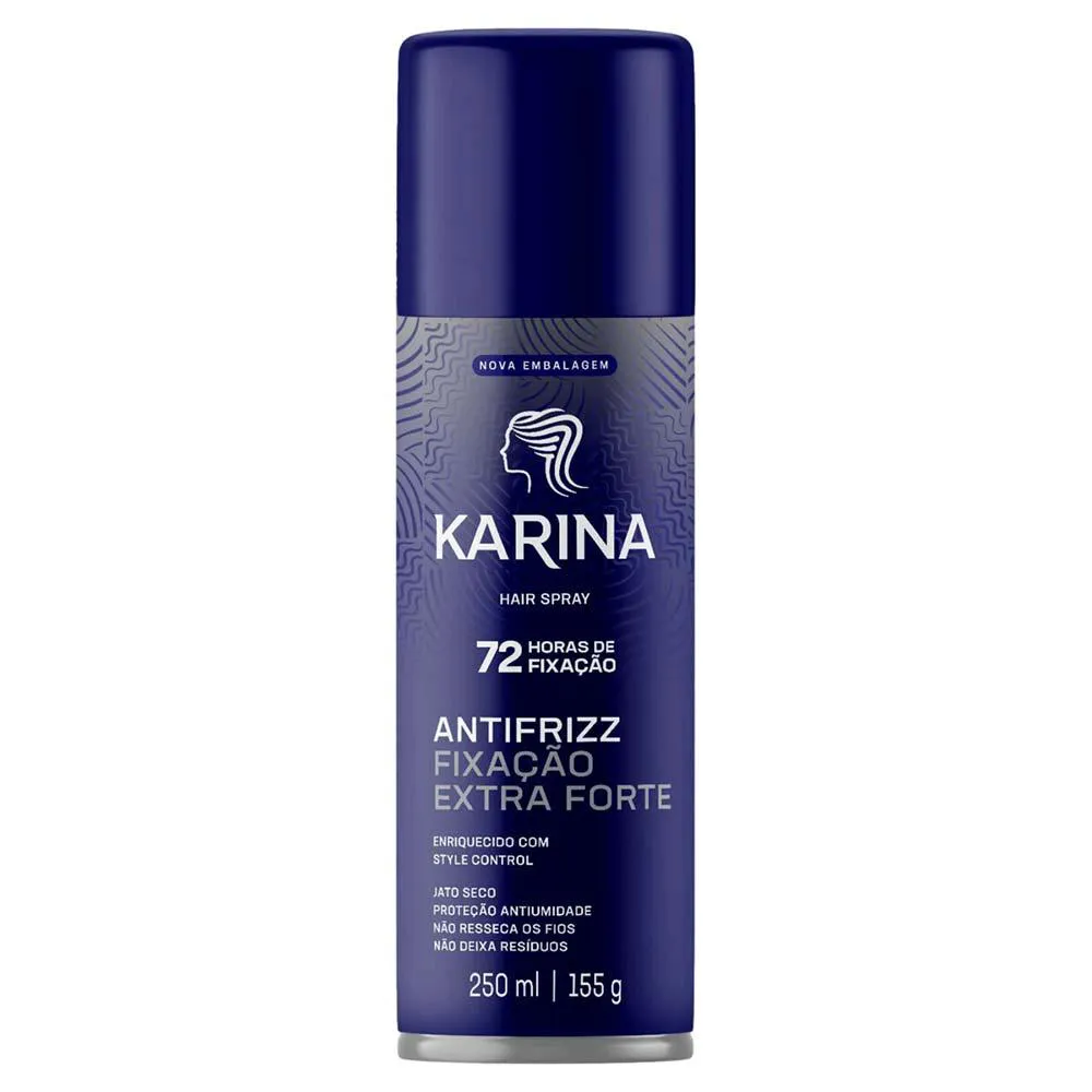 Enriquecido com Model-Fix, o Hair spray Karina Fixação Extra Forte garante o máximo controle dos cabelos, proporcionando ainda 100% mais brilho e proteção antifrizz e antiumidade. Com fixação extra forte, fixa com alta performance, sem agredir ou ressecar os cabelos
