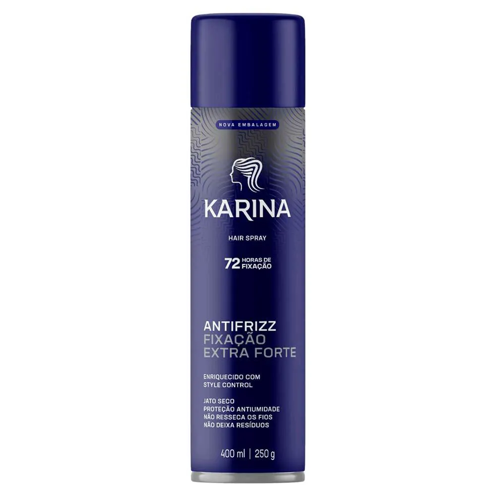 Enriquecido com Model-Fix, o Hair spray Karina Fixação Extra Forte garante o máximo controle dos cabelos, proporcionando ainda 100% mais brilho e proteção antifrizz e antiumidade. Com fixação extra forte, fixa com alta performance, sem agredir ou ressecar os cabelos