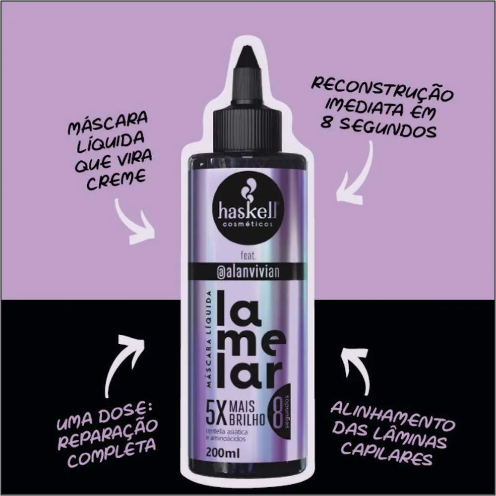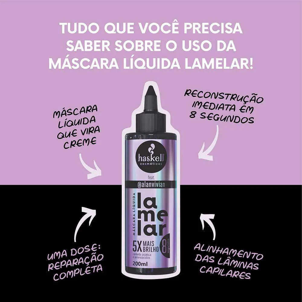 Desenvolvida pelo Cabeleireiro Calvo mais amado da “rede vizinha”, a Máscara Líquida Lamelar Haskell feat Alan Vivian tem como principal função fazer uma restauração ultraprofunda dos fios.