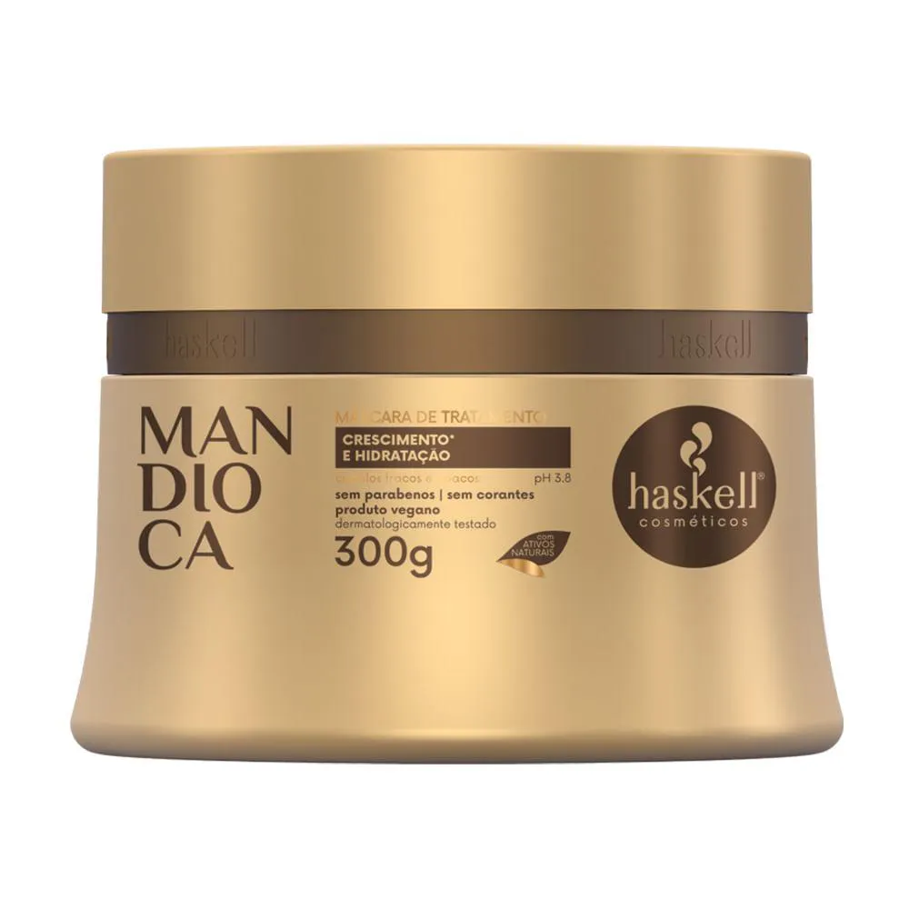 • Possui em sua formulação o óleo de mamona que fortalece os fios e tem alto poder hidratante, e também vitamina e, que combate o envelhecimento dos fios. A fórmula combina tutano, mamona e pró-vitamina B5 e assim a Máscara de Hidratação Mandioca Haskell revitaliza e promove hidratação intensa, força e ajuda no crescimento dos cabelos.