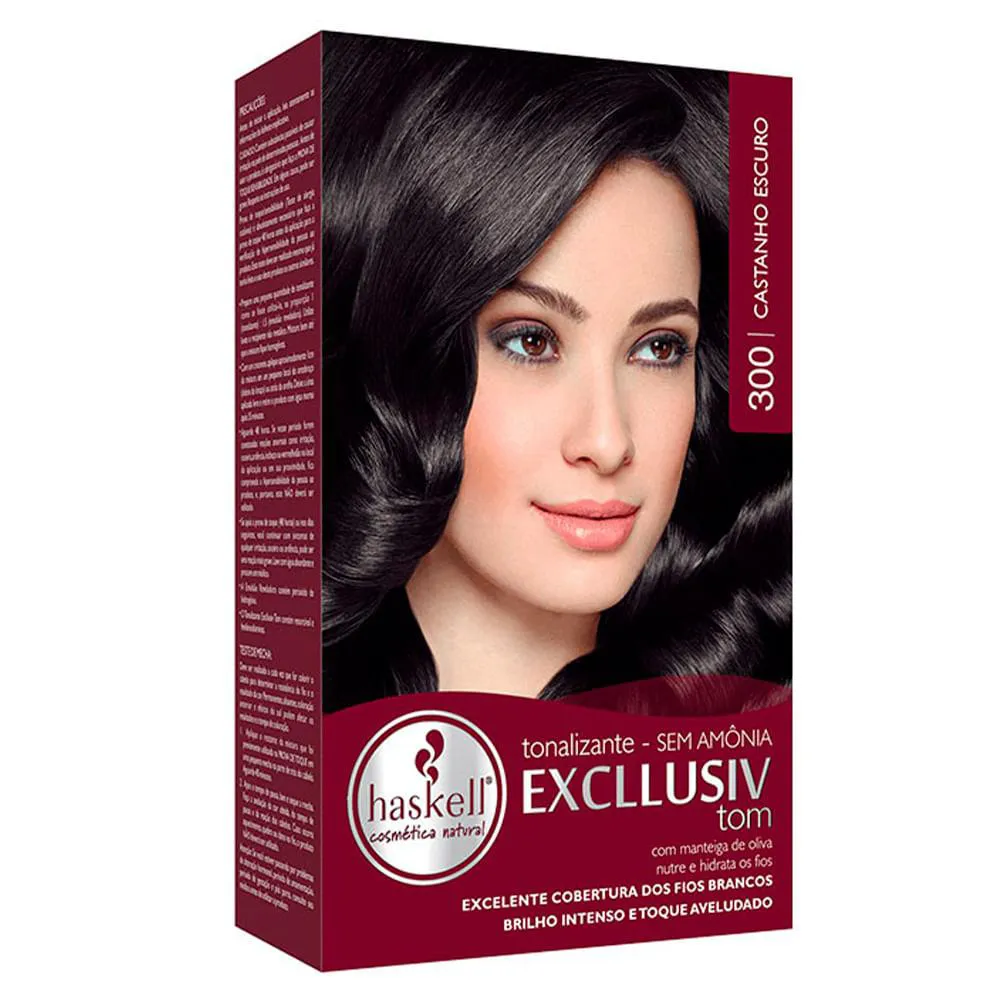 Haskell Tons Castanhos Kit – Tonalizante + Tratamento Pós + Emulsão + Luvas + Folheto 300 Castanho Escuro