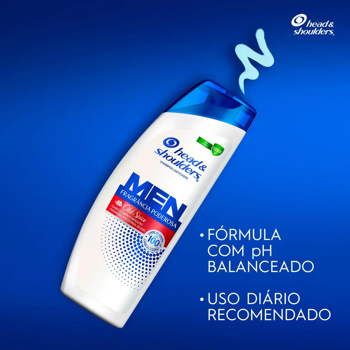 Head & Shoulders Men Old Spice é um shampoo anticaspa masculino com fragrância Old Spice, uma experiência refrescante e cheirosa para seu banho.