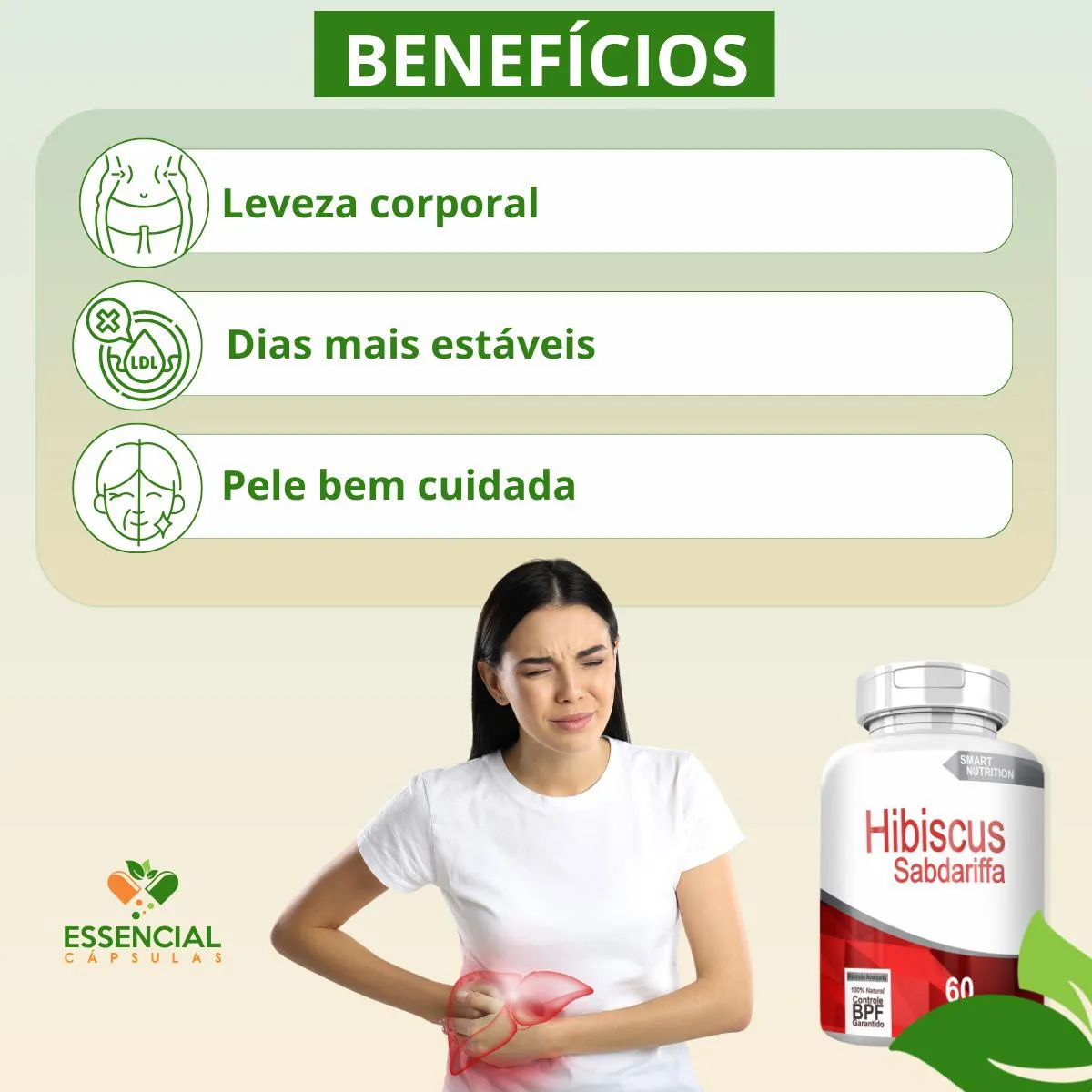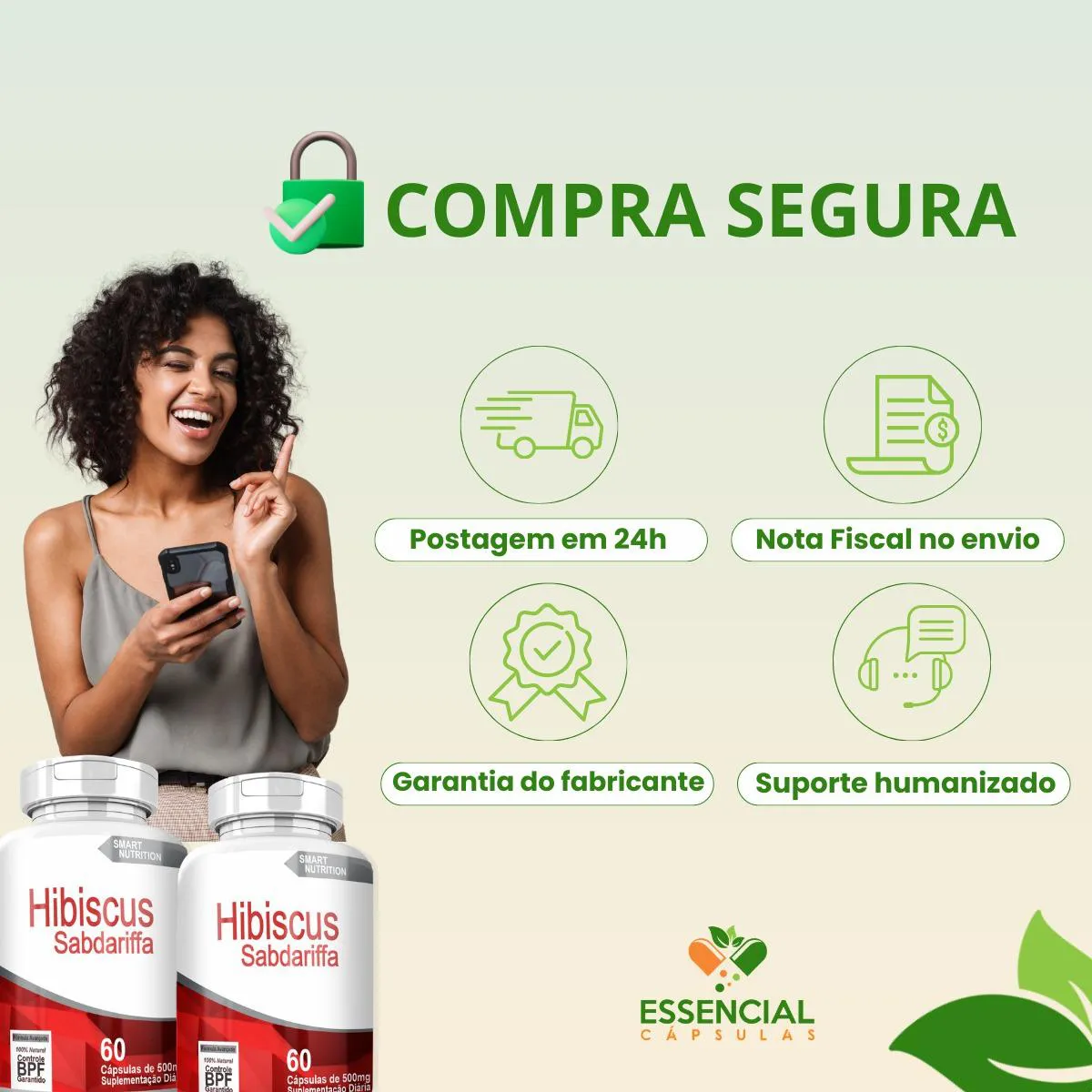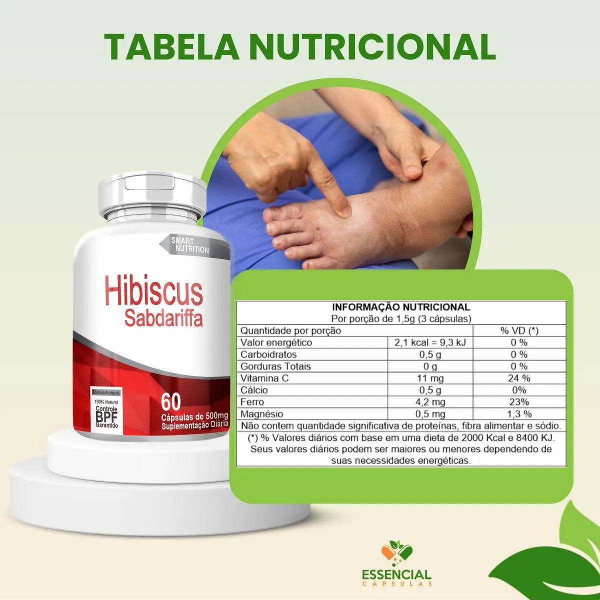 BEM VINDO(A) À ESSENCIAL CÁPSULAS Aqui, acreditamos que cuidar da saúde pode (e deve) ser algo natural, leve e diário. PRODUTO: - Hibiscus MARCA: - 4Elementos BENEFÍCIOS: ● Escolha para quem busca sensação de leveza diária ● Frequentemente utilizado no controle de retenção SUGESTÃO DE CONSUMO (PELO FABRICANTE): - 1 cápsula, de uma a três vezes ao dia - Ingerir com 200ml de água IMPORTANTE SABER: - Este produto é um suplemento alimentar natural. - Não é medicamento e não substitui uma alimentação equilibrada nem o acompanhamento de um profissional da saúde. - Como um produto natural, seus benefícios podem ser vistos a partir de alguns dias do uso. - Os suplementos são destinados a pessoas saudáveis. Sua finalidade é fornecer nutrientes, substâncias bioativas, enzimas ou probióticos em complemento à alimentação. COMPOSIÇÃO: - HIBISCO SABDARIFFA (FLOR) EM PÓ. NÃO CONTÉM GLÚTEN CONTRAINDICAÇÃO: - O uso não é recomendado para gestantes, lactantes e crianças. - Em caso de uso contínuo de medicamentos ou condições específicas de saúde, busque a orientação de um profissional da saúde. QUALIDADE: - Sabemos que o mercado de suplementos é competitivo, com opções para todos os públicos e faixas de preço. Na nossa loja, priorizamos a qualidade em cada detalhe. Por isso, escolhemos trabalhar apenas com fábricas que utilizam matérias-primas de excelência e seguem rigorosos padrões de produção. ENVIAMOS RAPIDINHO: - Seu pedido é preparado com todo cuidado e postado em até 24 horas úteis após a confirmação da compra. (Na maioria das vezes, enviamos bem antes disso)! FALE CONOSCO: Tem dúvidas ou quer conversar sobre o produto? Nosso atendimento é humanizado e está sempre pronto para te ouvir com muita atenção!