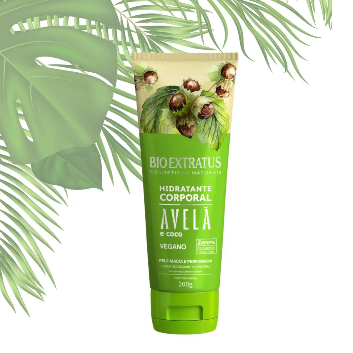 Loção hidratante Corporal Avelã 200g – Bio Extratus Hidratação nutritiva com toque aveludado! A Loção Hidratante Corporal Bio Extratus Avelã possui fórmula rica em óleo de avelã e vitamina e, que nutre profundamente a pele, promovendo maciez, elasticidade e proteção contra o ressecamento. De rápida absorção e com fragrância envolvente, deixa a pele suave e perfumada ao longo do dia. Características: · Hidratação prolongada e nutritiva · Textura leve e rápida absorção · Toque sedoso e não oleoso · Fragrância suave e marcante · Fórmula vegana e dermatologicamente testada Modo de uso: Aplique diariamente sobre a pele limpa e seca, espalhando com movimentos suaves até completa absorção. Conteúdo: 200g