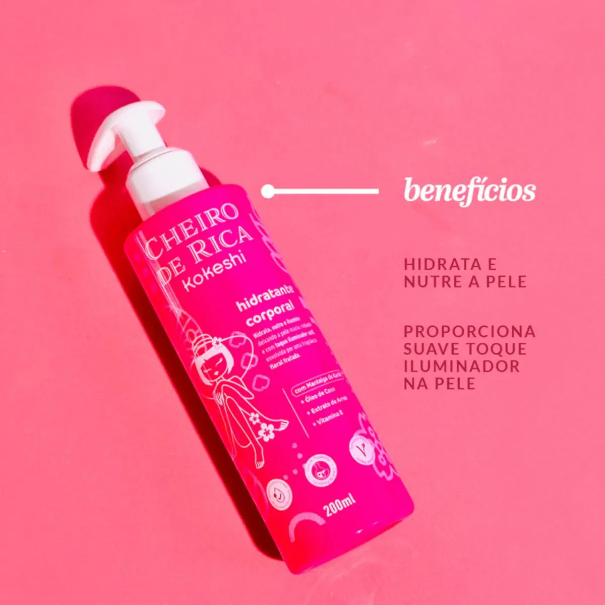 O Hidratante Corporal Cheiro de Rica nutre e hidrata profundamente, deixando um toque macio, iluminado e radiante.