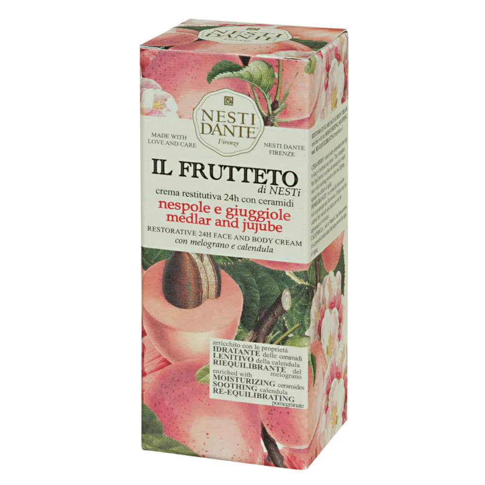 IL Frutteto Nespera e Jujuba da Nesti Dante é um hidratante Corporal com propriedades anti-stress com uma doçura intensa da flor Jujuba combina harmoniosamente com a delicadeza aveludada da Nêspera, criando um Hidratante enriquecido com vitamina c e propriedades anti-stress.