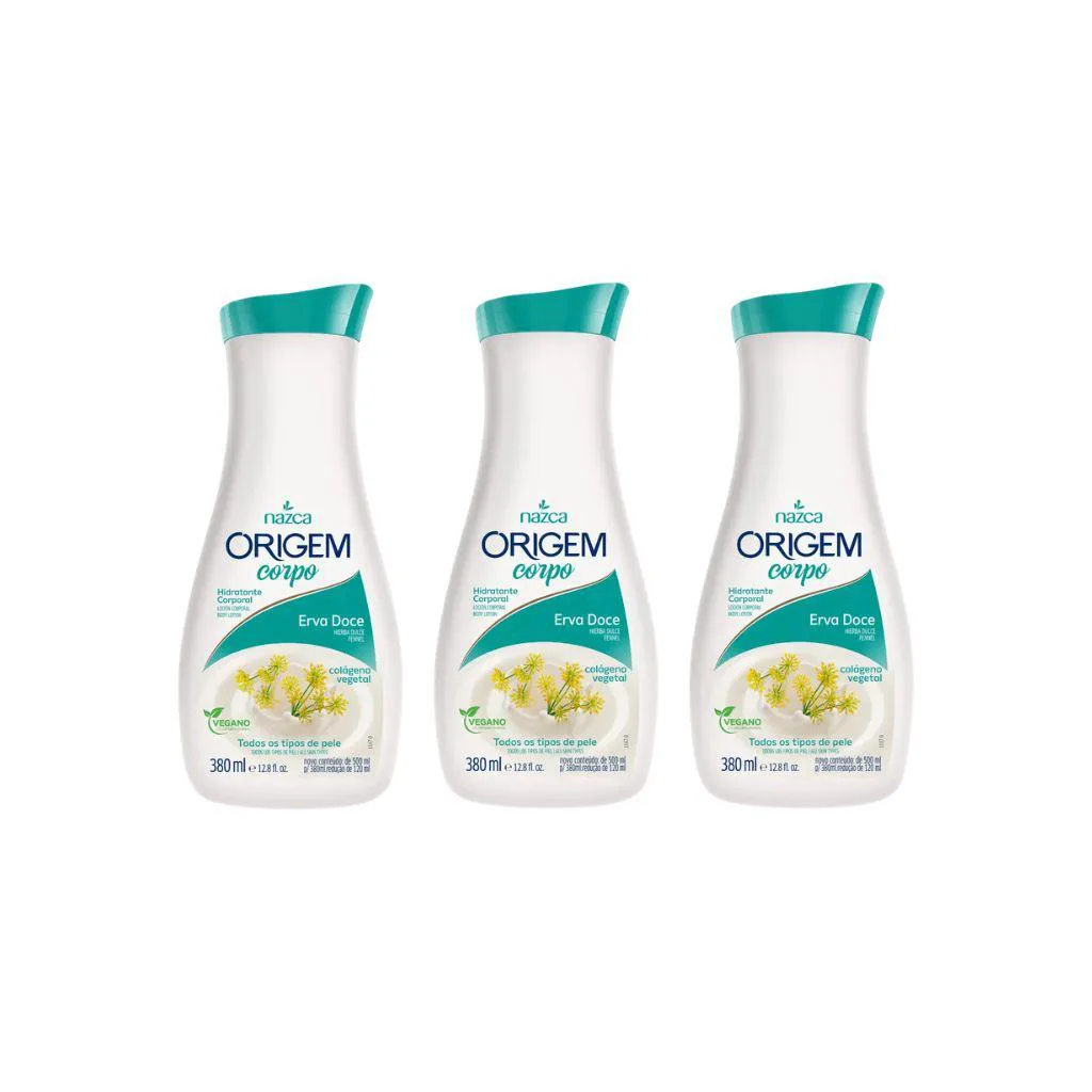 Hidratante Corporal Origem 380ml Erva Doce - Kit C/ 3un