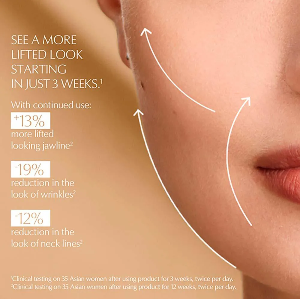 Linhas e rugas parecem dramaticamente reduzidas. A pele fica mais firme, sua densidade e elasticidade melhoraram significativamente. Em apenas 4 semanas, 96% das mulheres disseram que sua pele ficou mais firme.