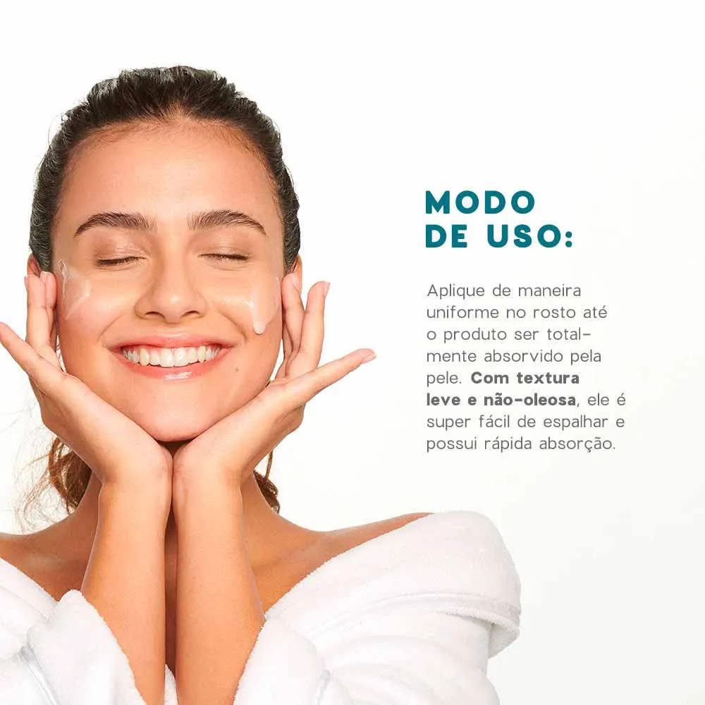 3. Aplique pelo rosto fazendo movimentos suaves até que seja completamente absorvido (o que acontecerá rapidamente graças à sua textura leve).