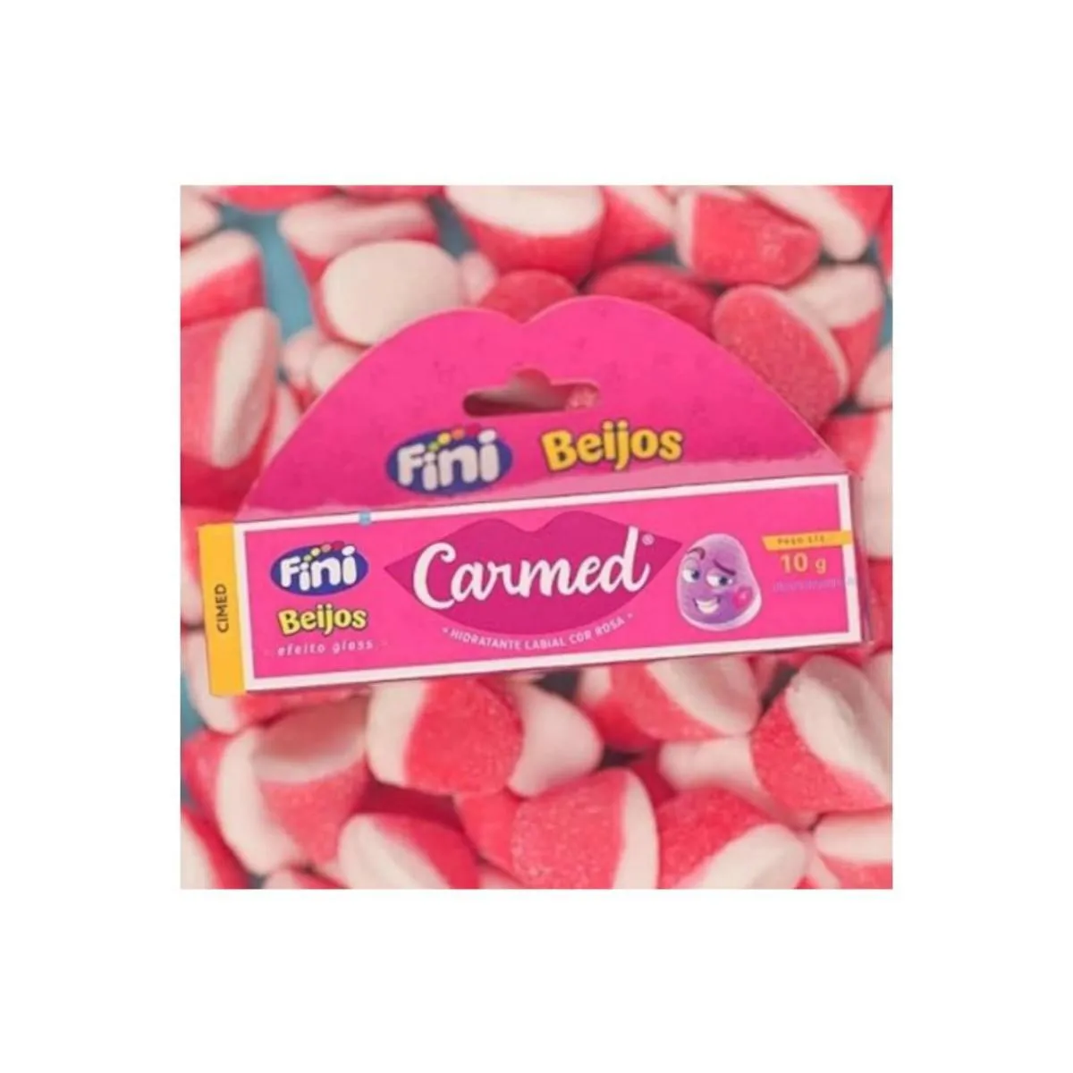 Carmed Fini Beijos é um hidratante labial com alto poder de hidratação e evita rachaduras, deixando os lábios macios e saudáveis. Possui cor rosa, efeito gloss e aroma de Fini Beijos.
