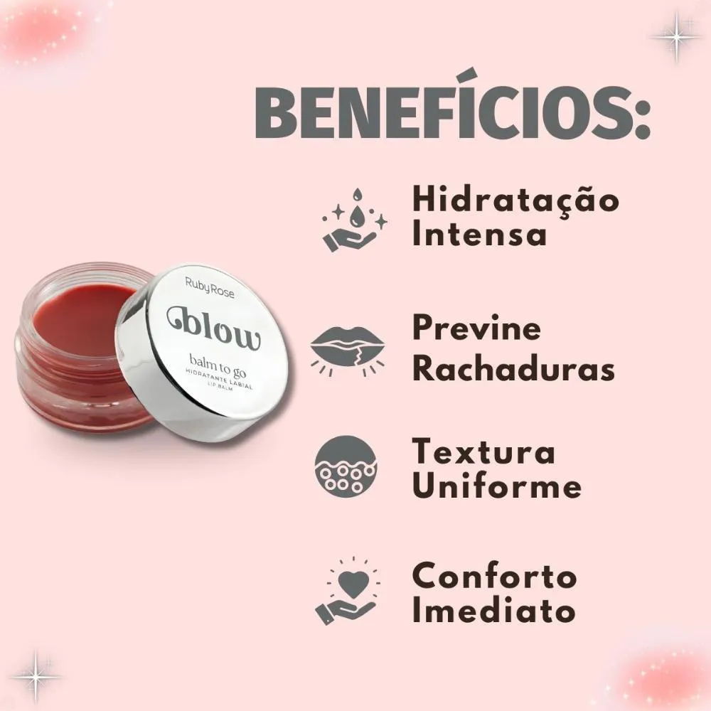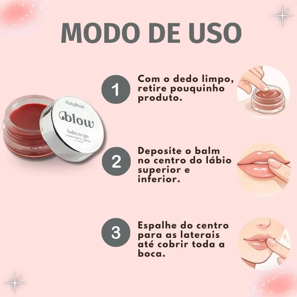 Para obter os melhores resultados, aplique o Hidratante Labial Ruby Rose Blow Balm To Go diretamente nos lábios sempre que sentir necessidade. Sua aplicação é simples e prática, garantindo um toque de hidratação e proteção imediata para o seu dia a dia.Anvisa: 25351.110720/2025-90