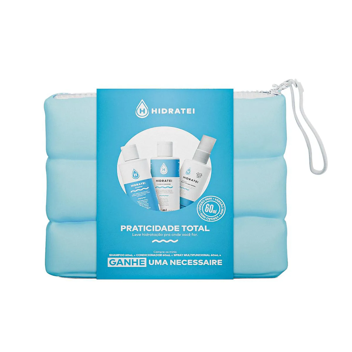 Kit Mini Hidratei Shampoo 60ml + Condicionador 60ml + Spray Multifuncional 60ml + Necessaire Puffer