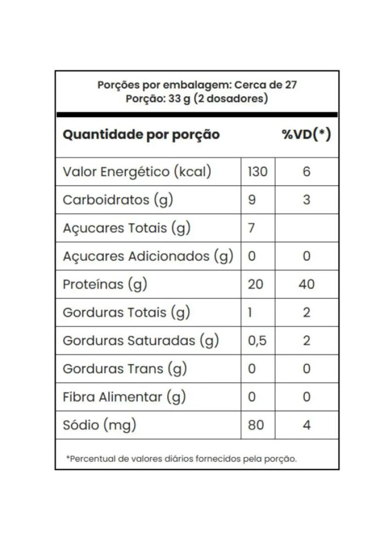 Misture 2 dosadores (34 g) em 200 ml de água gelada ou bebida de preferência. Consuma após o treino ou conforme orientação profissional.
