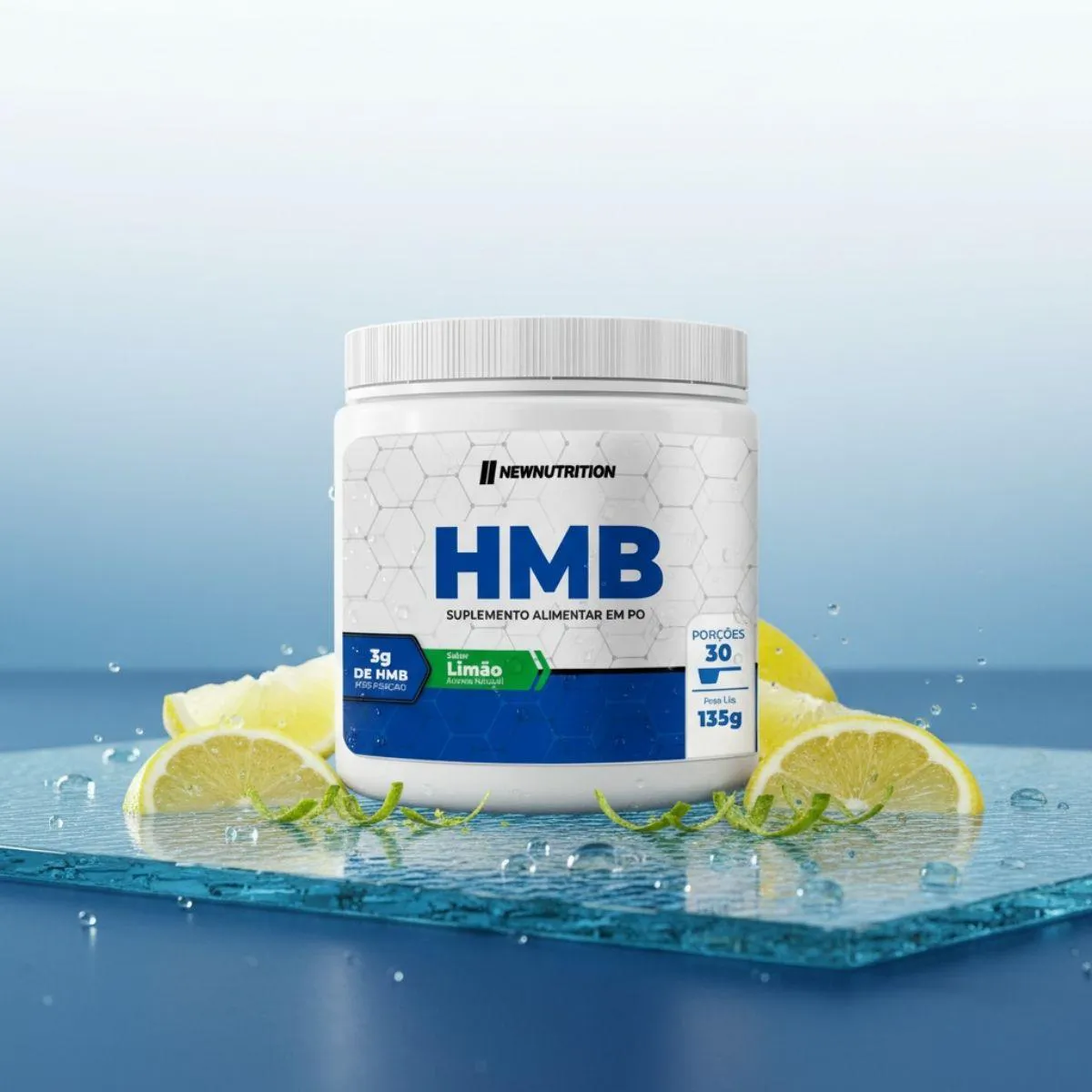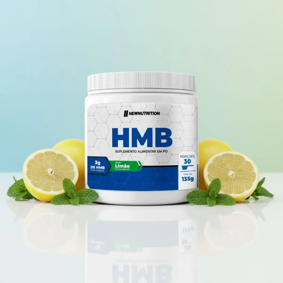HMB em pó (Hidroximetilbutirato) 114g New Nutrition HMB (hidroximetilbutirato) em pó, embalagem de 114 g, para diluição em bebidas.