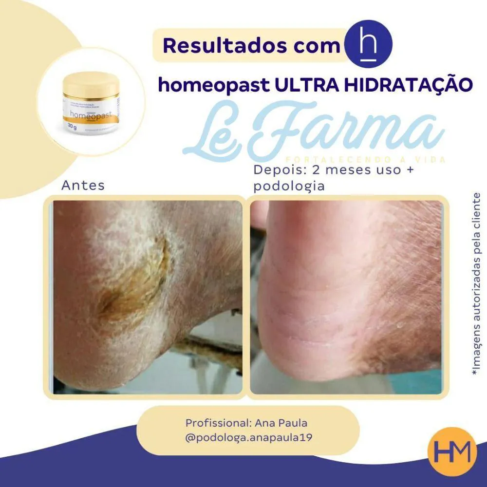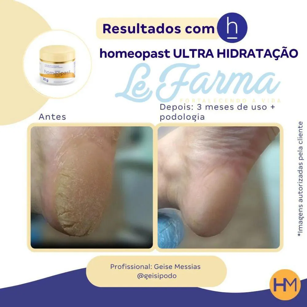 Homeopast Ultra Hidratação: Creme intensivo para pele ressecada e rachada. Hidratação profunda com ingredientes naturais como calêndula e aveia. Ideal para pés, cotovelos e joelhos.