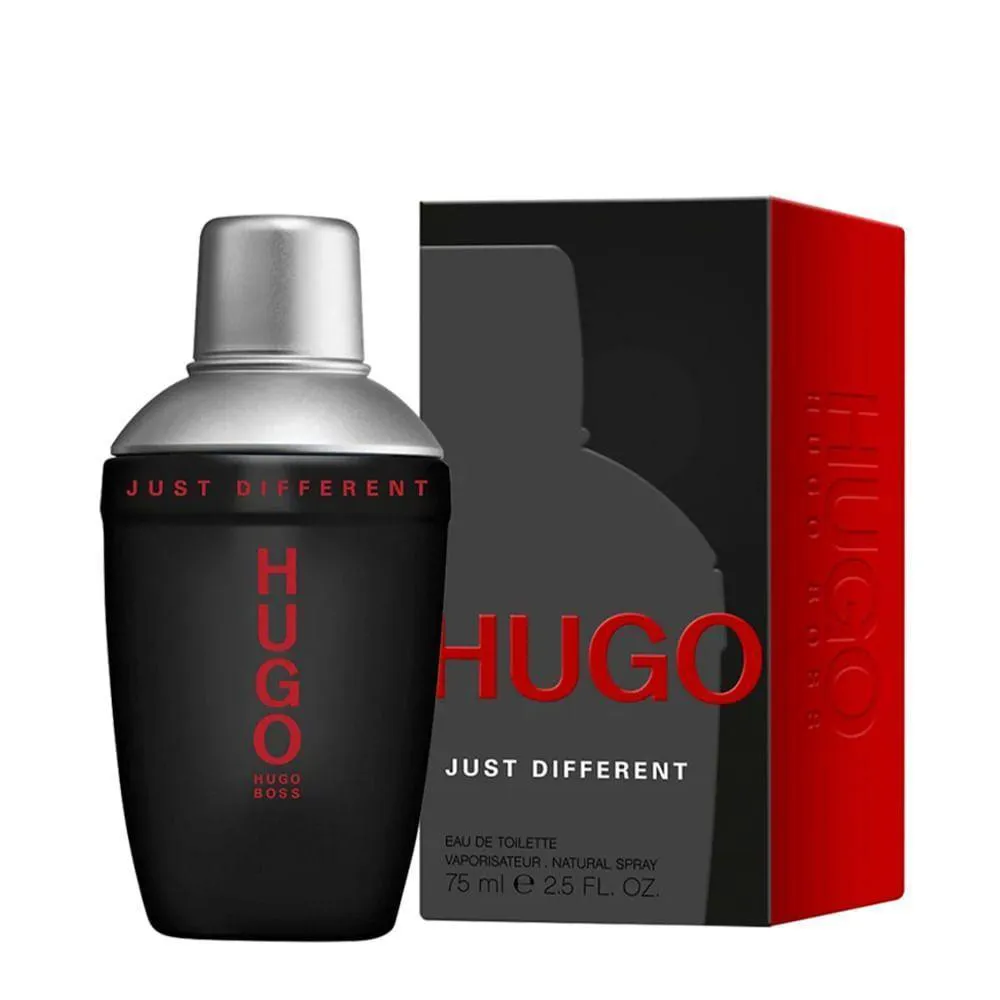O Hugo Boss Hugo Just Different Eau de Toilette é um perfume masculino pertencente à família olfativa aromática fougère, lançado em 2011 como uma reinterpretação moderna do clássico Hugo de 1995. Apresentado em um frasco preto fosco de 75ml, o perfume combina notas de menta gelada, maçã Granny Smith, manjericão, frésia, coentro, cashmeran, patchouli, olíbano e lábdano.